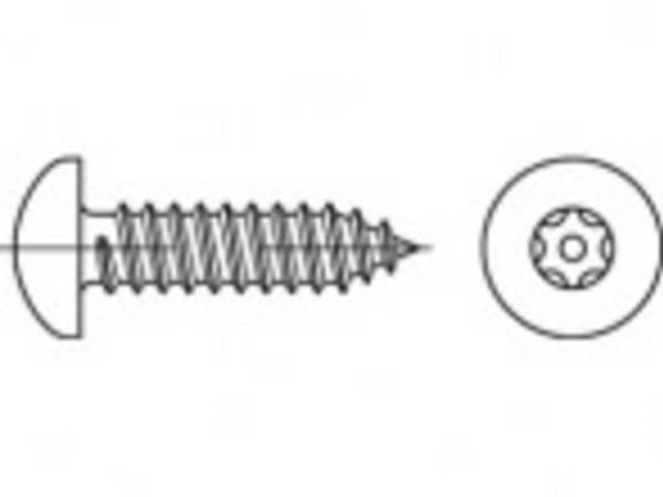 Artikel 88114 A 2 pin-sekskanttorx stålhæmmende skruer, linsehoved din 7981, blikskruer.-gev, ISR Tap mål: 6,3 x 38 (100 stk.)