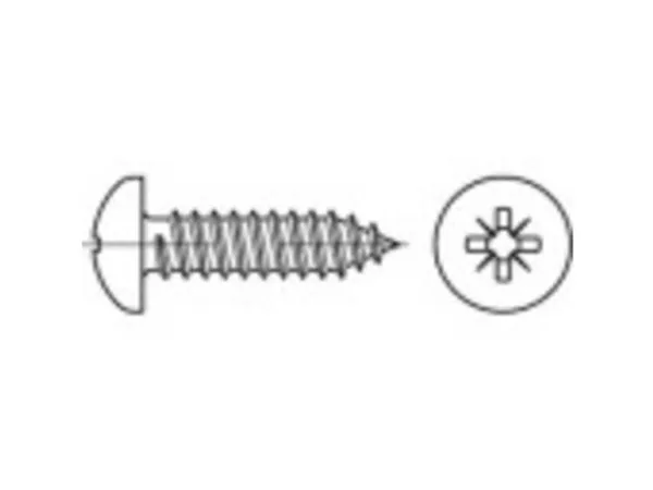 ISO 7049 stål, hus. Form F galvaniseret Linsehoved-pladeskruer med tapper, med Phillips-krydskærv H mål: F 2,9 x 22 -timer
