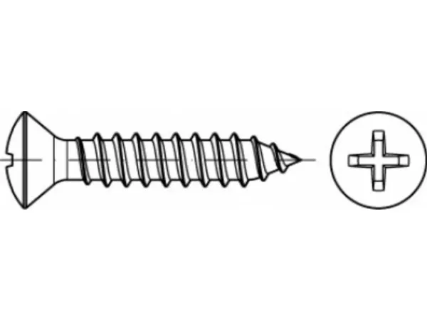 ISO 7051 stål, hus. Form C-H galvaniserede forzinkede blikskruer med spids, med Phillips-krydskærv H mål: 2,9x 22 -C-H