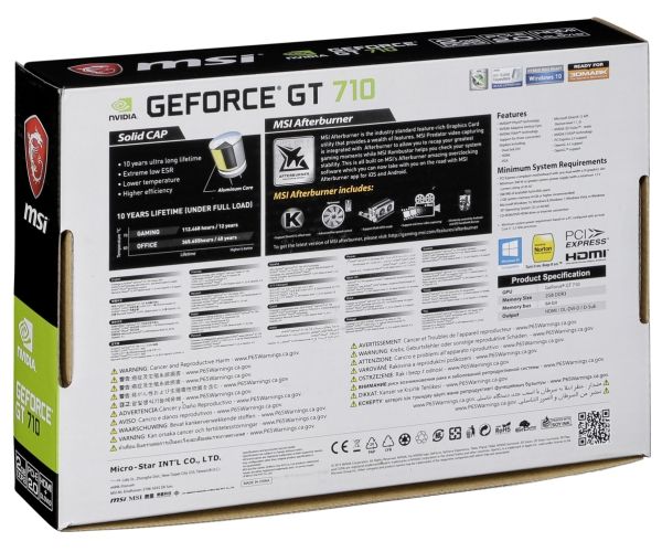 MSI GT 710 2GD3H LP - Grafikkort - GF GT 710 - 2 GB DDR3 - PCIe 2.0 x16 lavprofil - DVI, D-Sub, HDMI