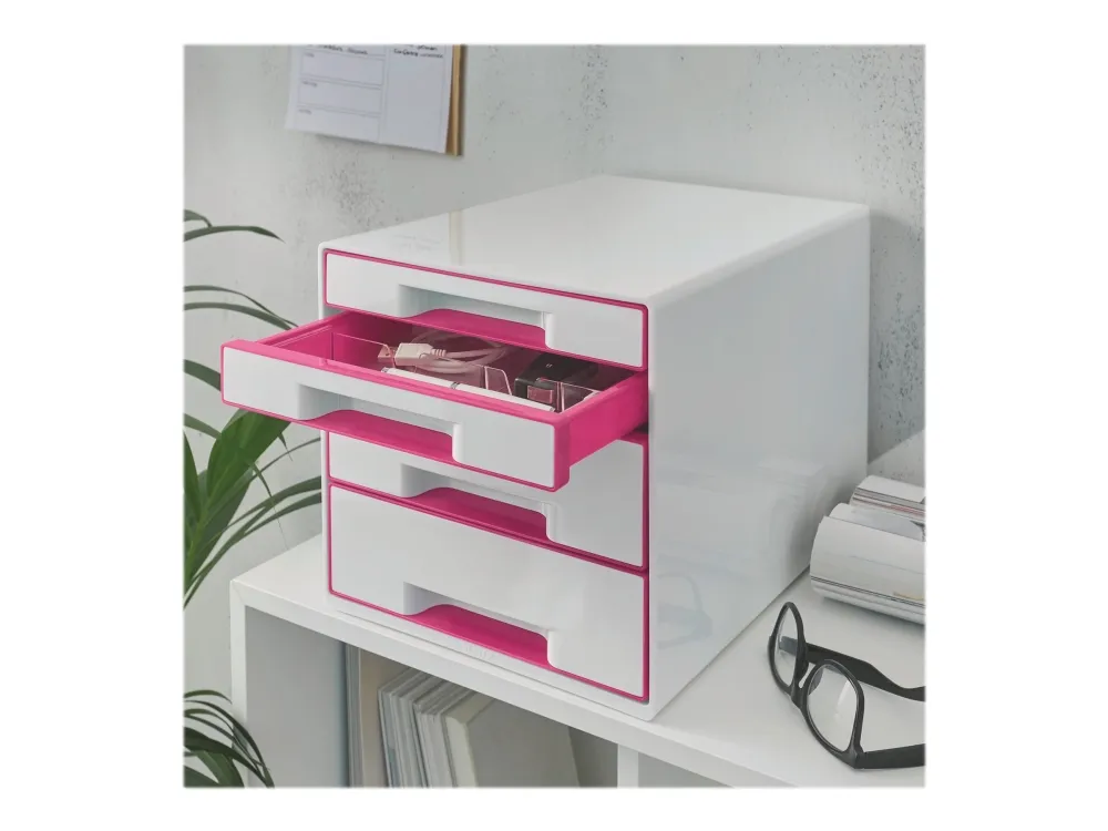 Leitz WOW CUBE - Skuffskap - 4 skuffer - for A4 (210 x 297 mm) - metallisk rosa