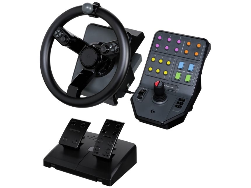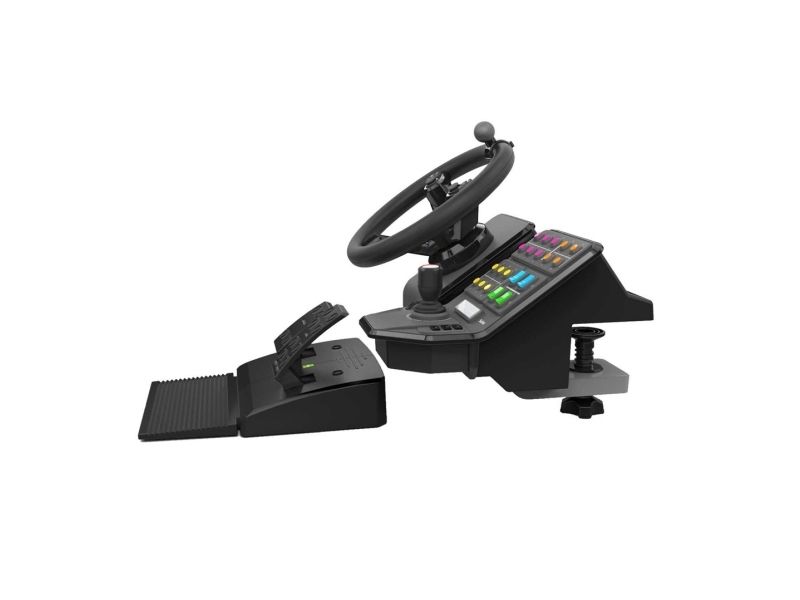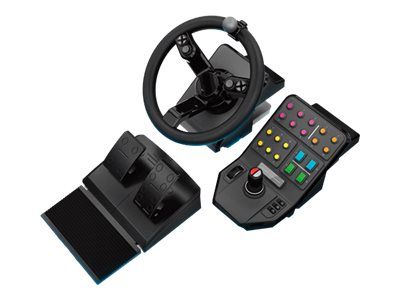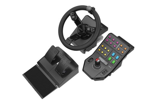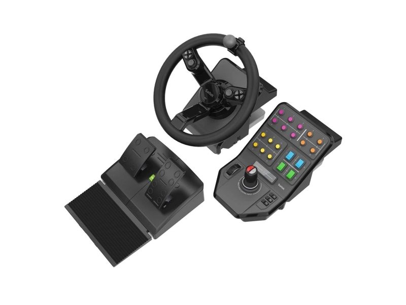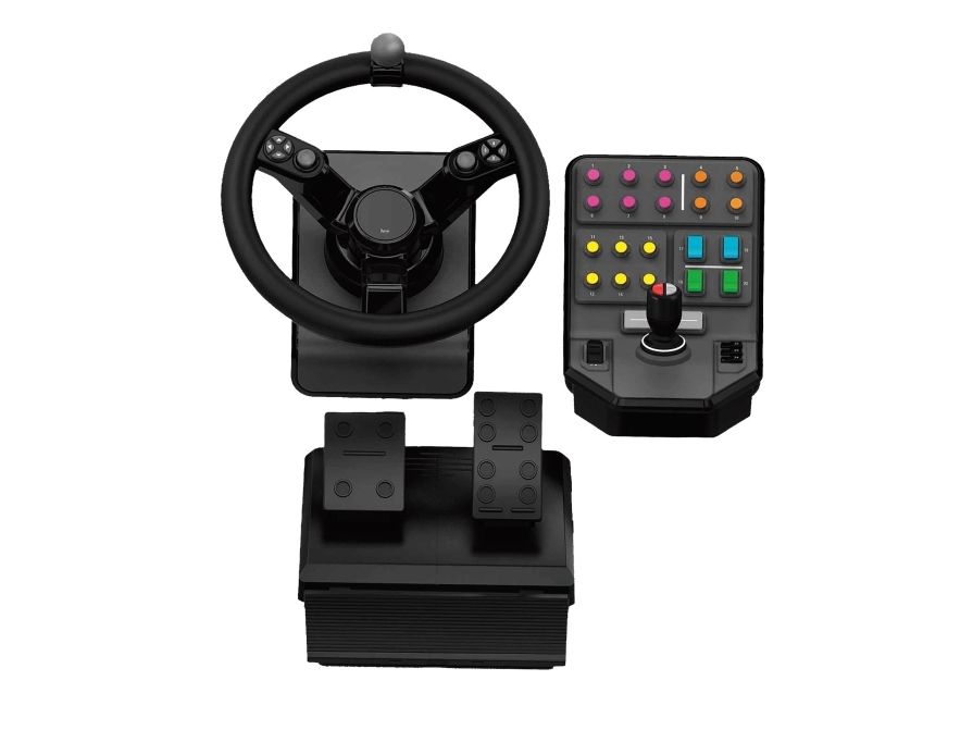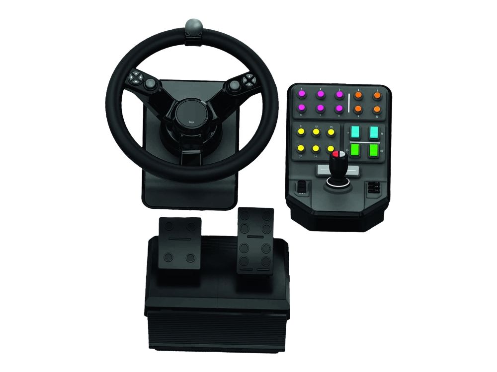 Pakken Logitech G Heavy Equipment Bundle er en imponerende samling av spesialisert utstyr for landbrukssimulering. Alle de viktigste verktøyene er her: 900° hjul, røffe pedaler og et sidepanel så brukerne kan glede seg over en mer realistisk opplevelse.