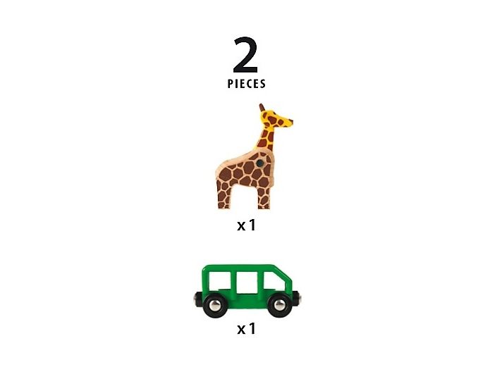 Add this giraffe and wagon to any rail adventure for even more fun. The giraffe fits perfectly inside the wagon and can move its neck up and down.