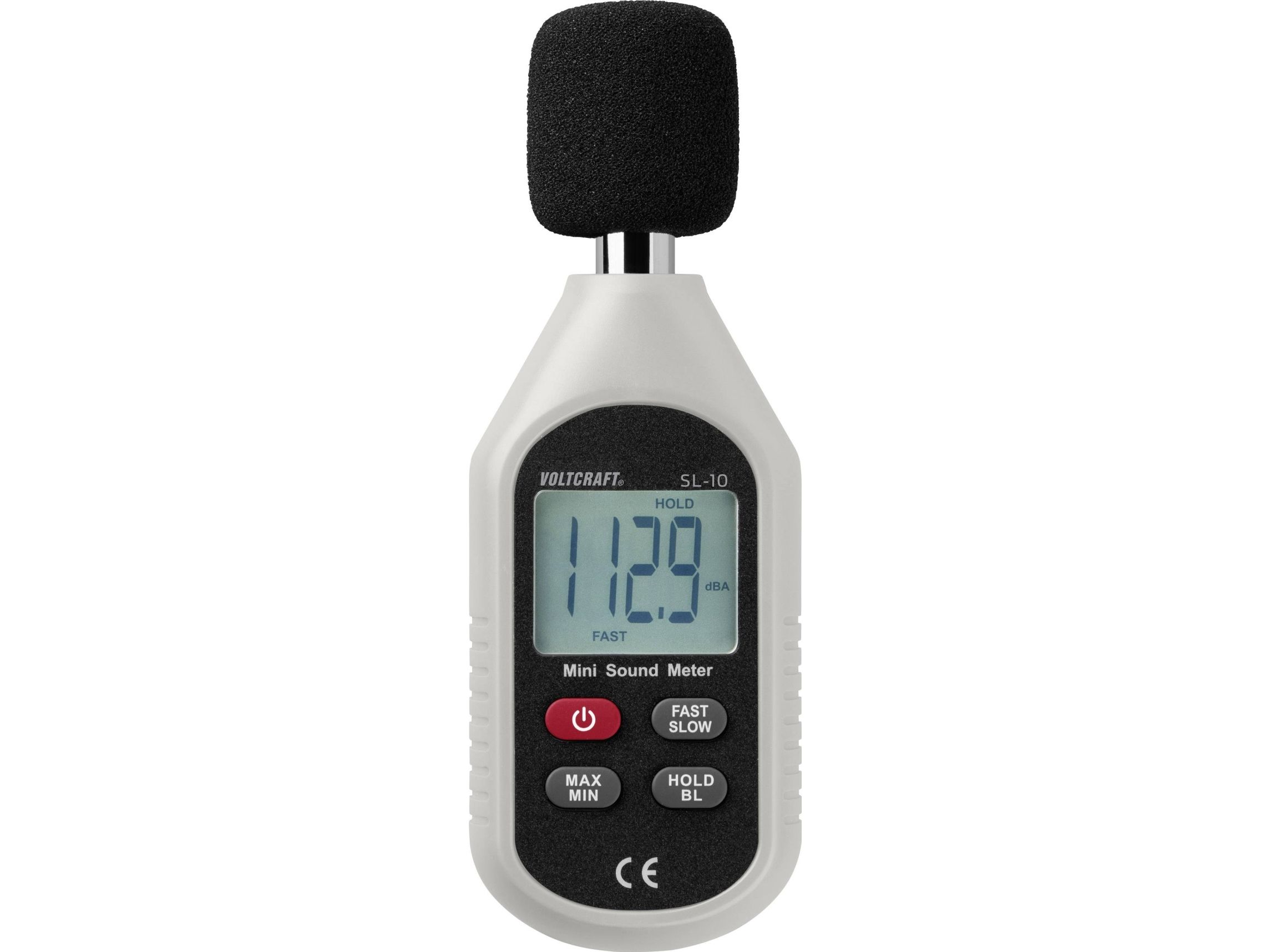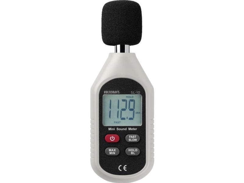 VOLTCRAFT lydniveaumåler SL-10 giver ved hjælp af de forindstillede parametre dig mulighed for en hurtig og enkel støjniveaumåling med lineær frekvensvurdering (dBA). Ideel til nem måling af omgivelsesstøj eller andre støjkilder. Derudover har måleenheden to forskellige måleintervaller (Fast/Slow) til forskellige anvendelsesområder.