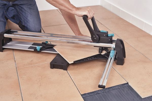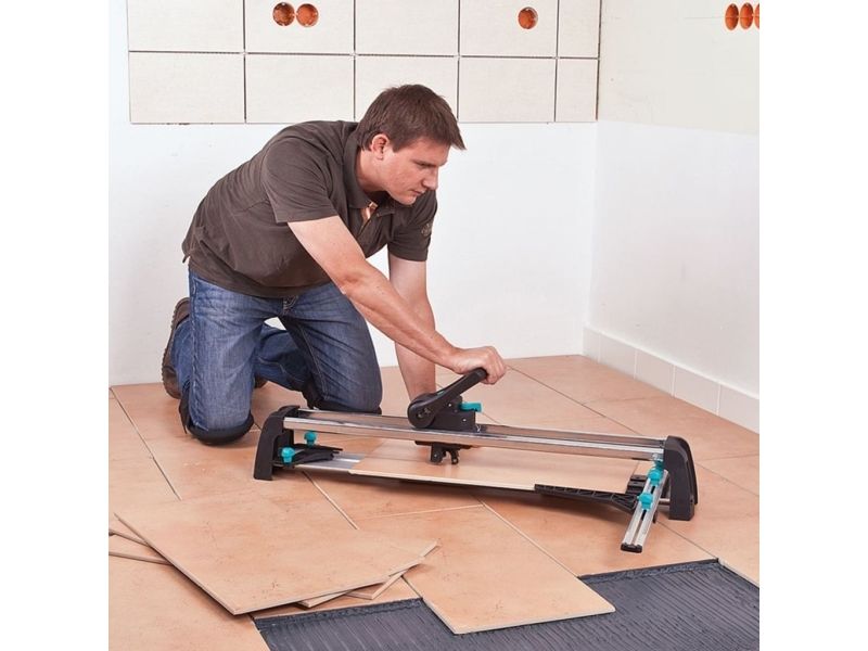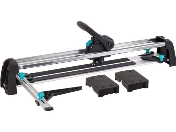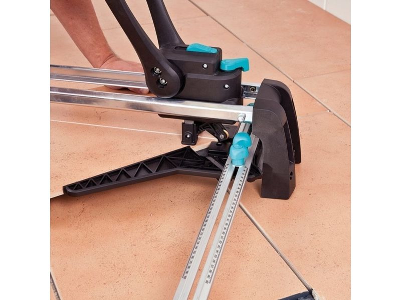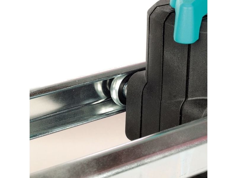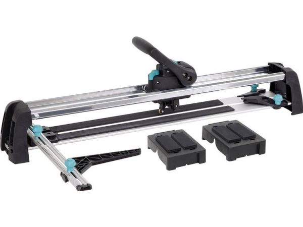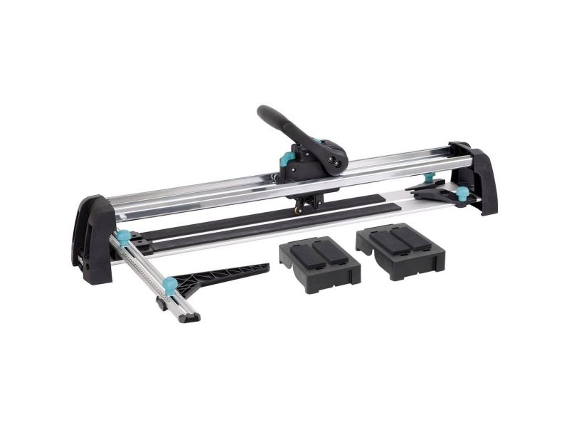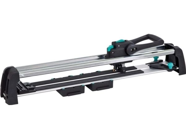 - Perfect result in three steps: - once adjusted tile thickness and surface pressure - smooth continuous cut - easy breaking without much effort - low-maintenance and precise guidance by groove ball bearings and c-section rails - special guide for diagonal cutting - stable and rigid base plate made of aluminium profile - free view on the cutting process - suitable for right and left-handed - cutting wheel made of tungsten-carbide & TiN Ø 20 mm bore 5 mm - cutting length: 670 mm - tile thickness: 4-14 mm - including: 1 guide rail with angle fence for repeat and diagonal cuts 2 material supports attachable to base plate - packaging: covering box