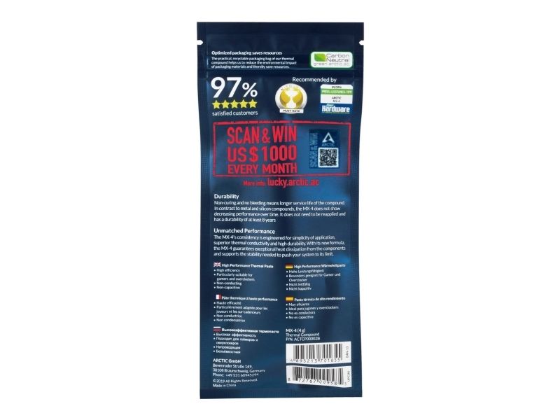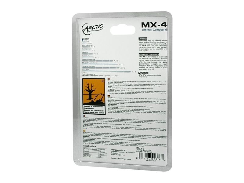 The Arctic MX-4 is a thermal compound that guarantees exceptional heat dissipation from components and maintains the needed stability to push your computer system to its maximum. The Arctic MX-4 continues to be overclocker's ultimate choice when choosing thermal compound.