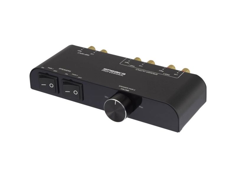 SpeaKa Professional 2-port høyttalerbryter med integrert volumkontroll svart (SP-6518220)