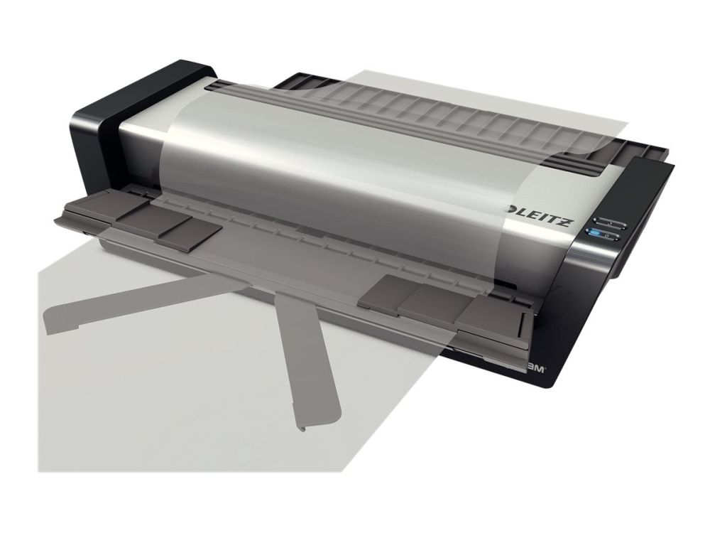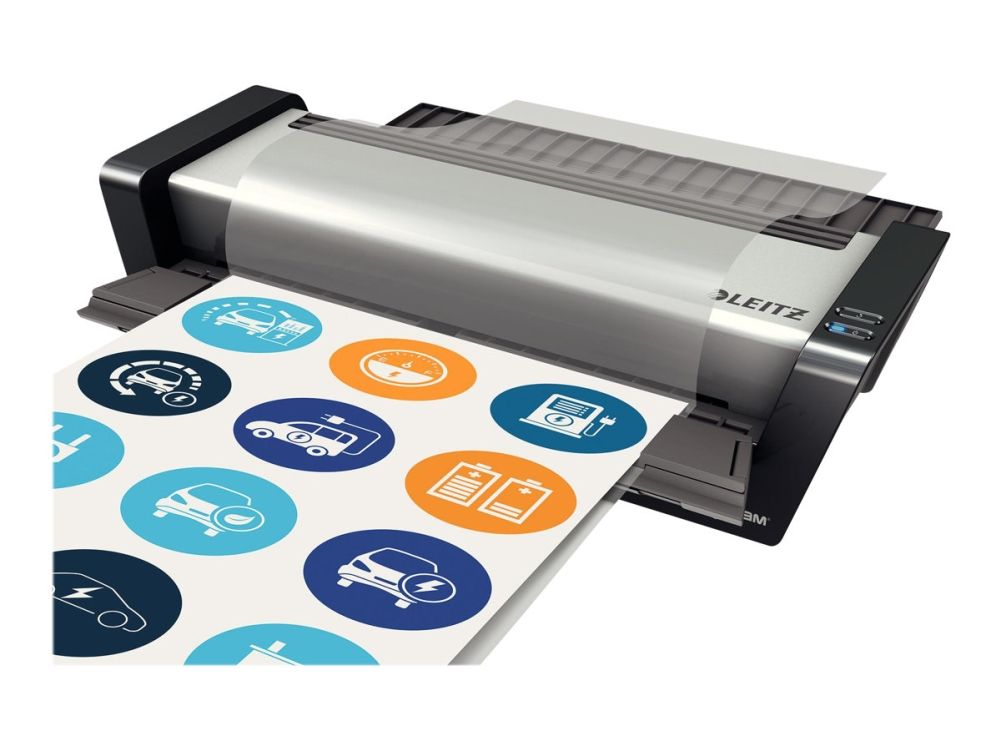 Helautomatisk og høyhastighets A3 premium lamineringsmaskin med unik sensorteknologi. Gjenkjenner dokumentets tykkelse og velger automatisk den optimale hastigheten. For 80-250 my (micron) lamineringslommer. Kun 1 minutts oppvarmingstid. For intensiv, profesjonell bruk.