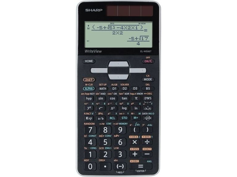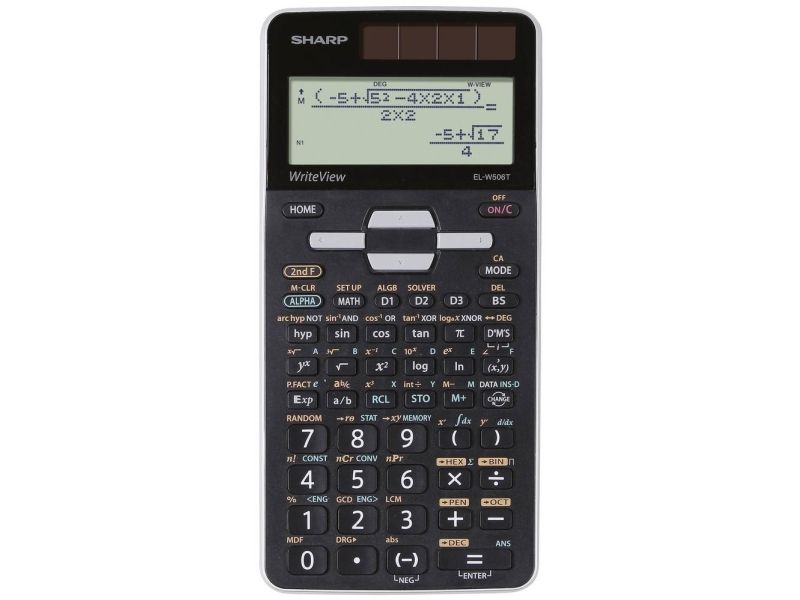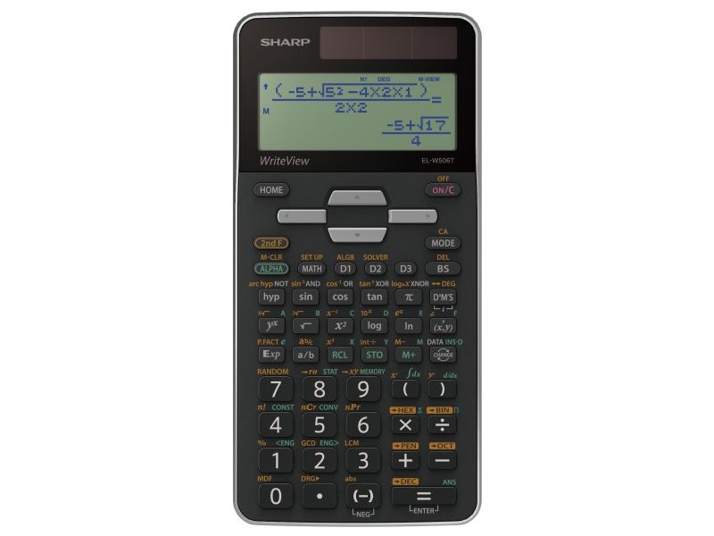 The new EL-W506T is the most advanced scientific calculator in the Sharp portfolio. It contains 640 mathematical functions and is especially suited for high school students and universities. The "WriteView" display allows you to write and display expressions in the usual way, as on paper. The sturdy plastic cover protects the calculator against scratches and falls, solar power saves the backup battery.