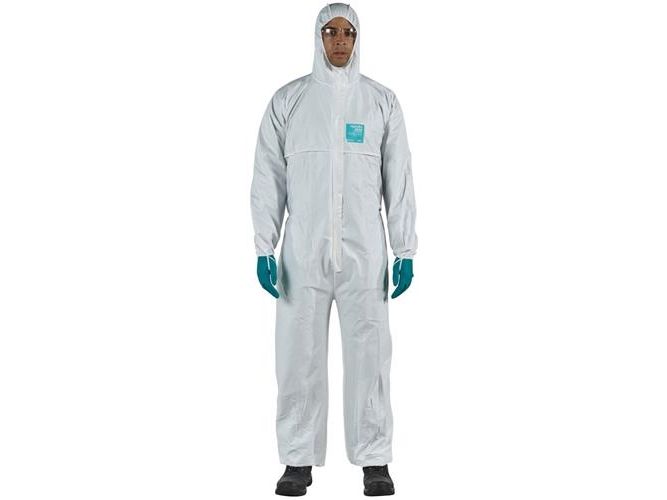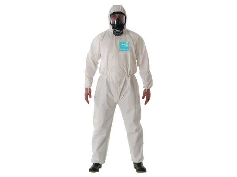 Beskyttelsesdragt, Ansell Alphatec 2000. Dragt, som er designet til ekstraordinær beskyttelse mod væsker og partikler. Er ideel til en bred vifte af industrielle anvendelser. Har en 3-delt hætte, for optimal tilpasning til helmaske, en tovejs lynlås med stormknap samt elastik om håndled, livrem, ankler, hætte og med tommelfingerelastik. Dragten er fremstillet i PE-lamineret materiale og har sømme med overlegen styrke, som fungerer som en barriere for væsker og partikler. Er velegnet til brug ved farmaceutiske gøremål, i landbrug og renrum, ved gerningsstedsundersøgelse, som dyrlæge eller ved brug af sprøjtemaling. Dragten har Microgard® 2000-standard, som stemmer overens med følgende europæiske standarder: Type 5 EN ISO 13982-1: Beskyttel[...]