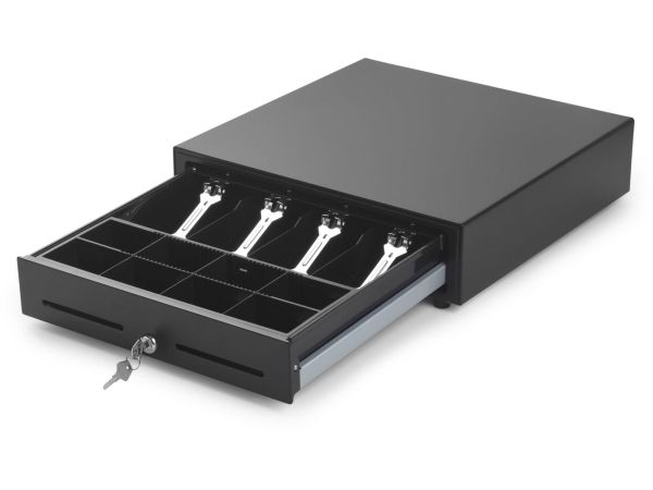 Capture CA-CD410-480 elektronisk kontantskuff er designet med tanke på holdbarhet og funksjonalitet. Denne kassaskuffen er konstruert av robust metall og stål, og er bygget for å tåle kravene i travle miljøer. Mikrobryteren og den 3-posisjons nøkkellåsen gir ekstra sikkerhet og sørger for trygg håndtering av kontanter og kvitteringer. Denne kassaskuffen har et avtakbart myntbrett med to rader og åtte rom, noe som gir mulighet for organisert oppbevaring av mynter. I tillegg har den to luker foran for sjekker og kortkvitteringer, noe som gjør transaksjonsbehandlingen effektiv. Seddelskuffen er utstyrt med fire seddelklemmer i metall for sikker oppbevaring av sedler, samtidig som den er lett tilgjengelig.