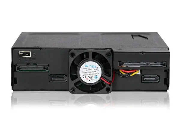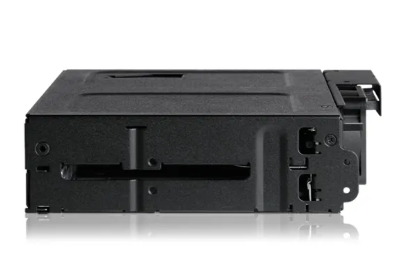Introducing the ToughArmor MB602SPO-B ruggedized mobile rack for hot-swapping 2x SATA/SAS SSDs and HDDs up to 15mm in height, and 1x Slim 12.7mm or Ultra-Slim 9.5mm CD/DVD/Blu-ray ROM optical disk drive reader for the external 5.25" bay. Featuring industrial full-metal construction inside and out, and designed for commercial applications such as military and medical systems, airborne and shipboard PCs, in-vehicle systems, servers, workstations, and mobile computer systems. Maintain optimal drive temperatures with the user-configurable 40mm cooling fan and plenty of ventilation holes throughout the enclosure. Advanced removable trays with anti-vibration protect drives in harsh environments, and built-in individual status LEDs give you drive updates at a glance.