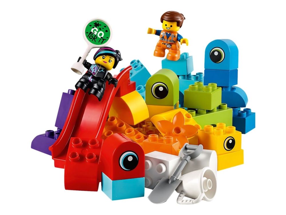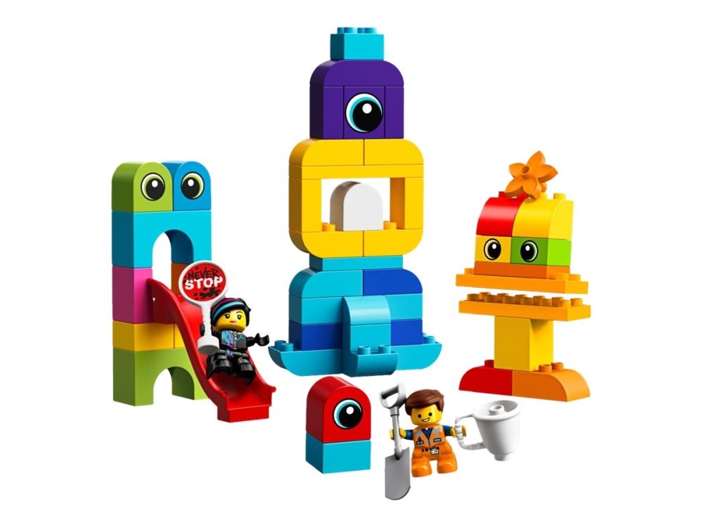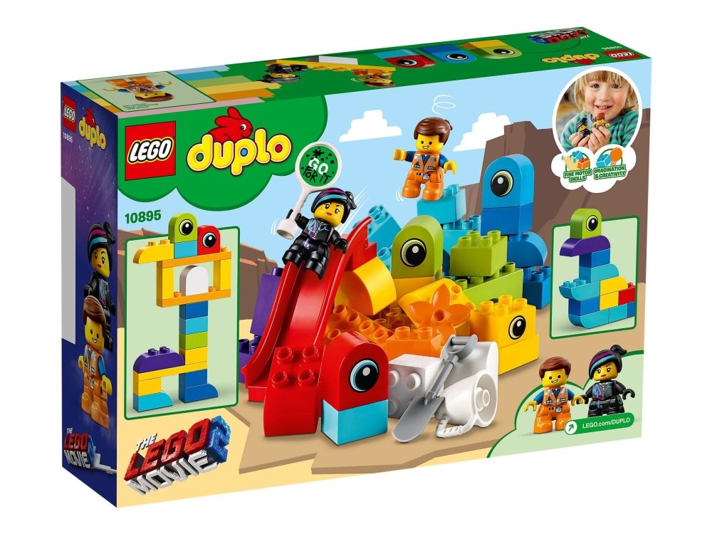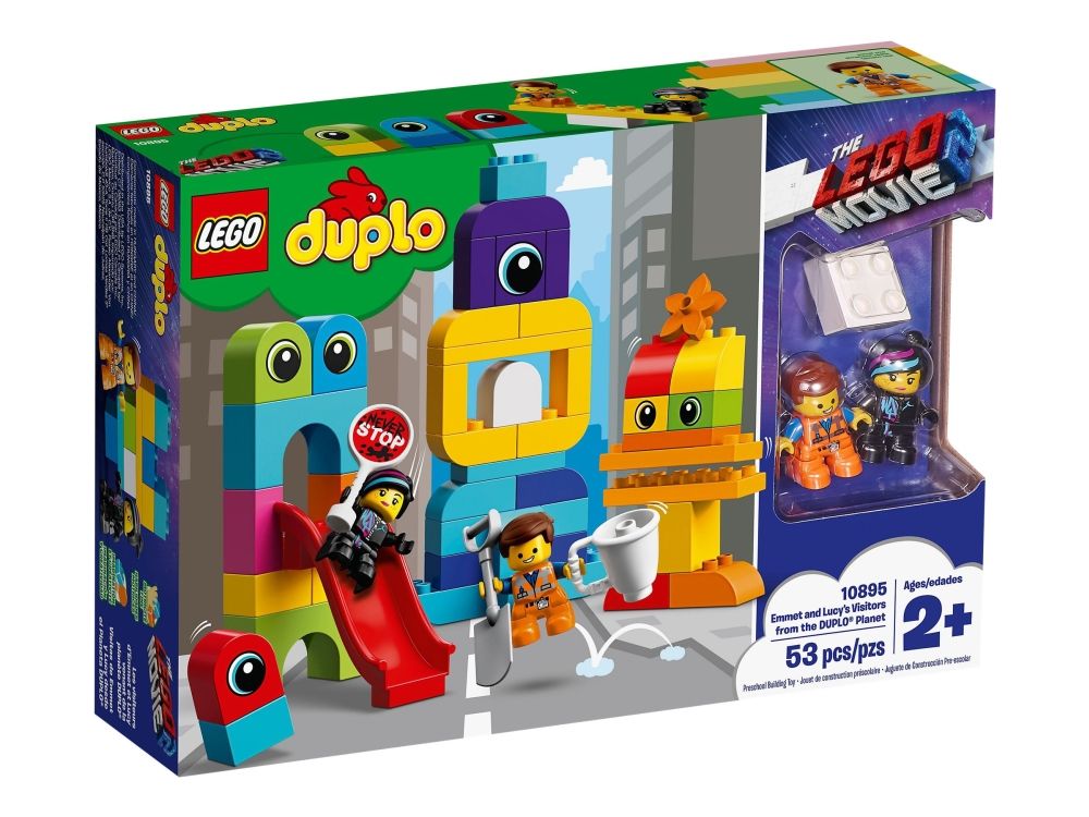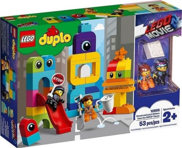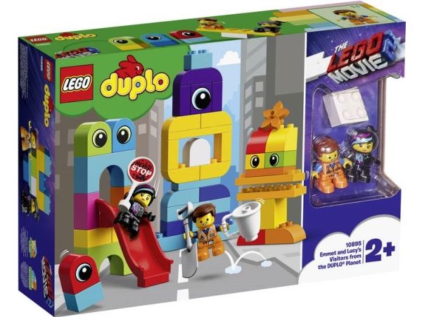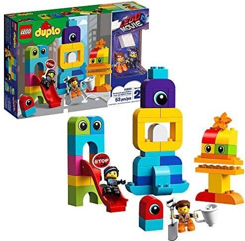 Introduce your toddler to the color and creativity of THE LEGO MOVIE 2 with this LEGO DUPLO 10895 Emmet and Lucy's Visitors from the DUPLO Planet preschool toy. Little fans of Emmet and Lucy will love helping them defend against the easy-to-build alien invaders! Then mix all the bright and chunky DUPLO bricks up so young children can create more aliens of their own, developing imagination and fine motor skills on their journey to becoming the next master builder!
