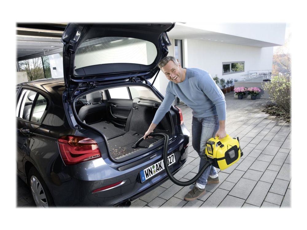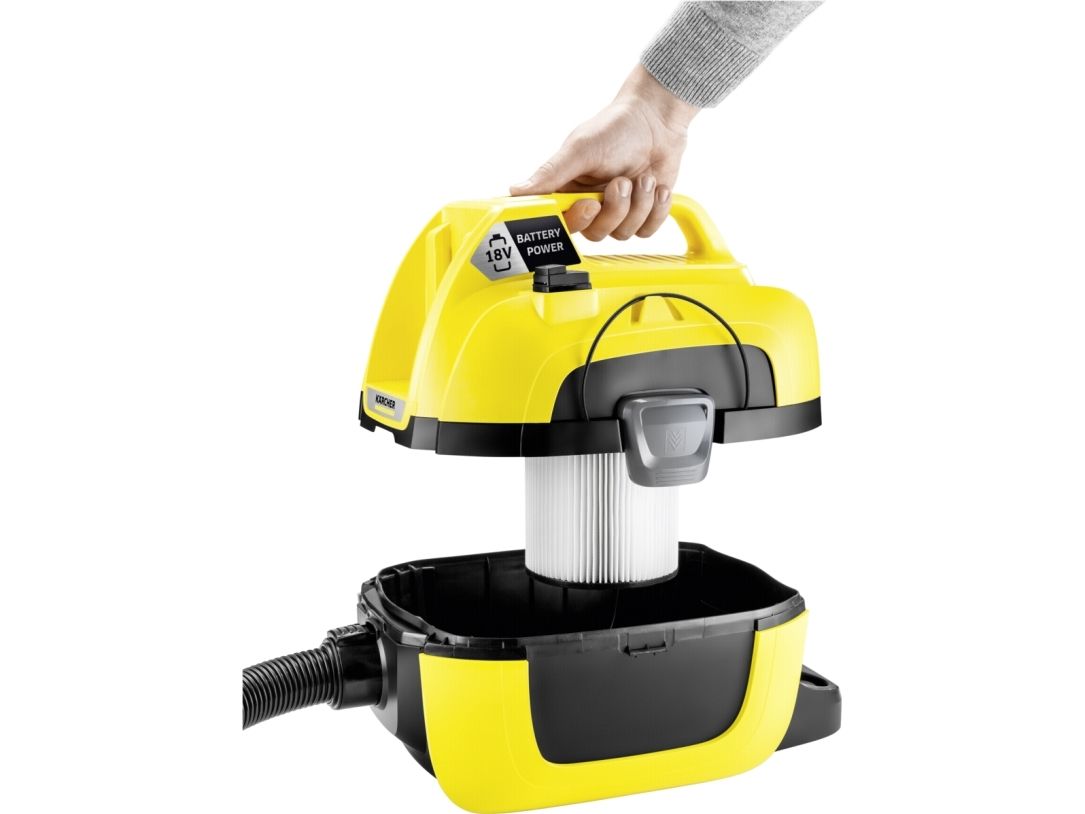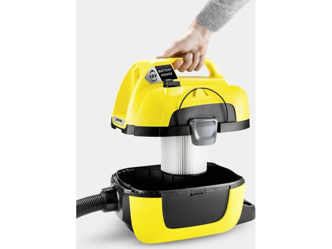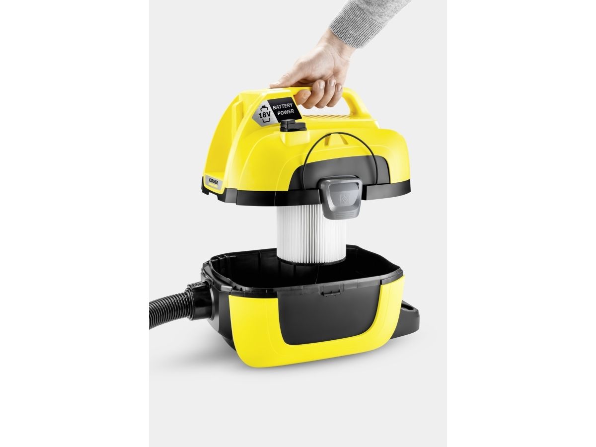 Kärchers batteridrevne multifunktionelle støvsuger WD 1 Compact Battery giver maksimal bevægelsesfrihed, og kan bruges uden en stikkontakt i nærheden. Derudover har maskinen lav vægt og fylder meget lidt. Afhængigt at hvilket 18 V batteri som benyttes (batteri er ikke inkluderet) kan WD 1 have en drifttid fra 10 til 20 minutter. WD 1 Compact Battery har også en robust 7 liters plastikbeholder, og et patronfilter, og kan derfor suge vådt eller tørt uden at skifte filter. Ydereligere tilbehør: Møbelmundsykke og fugemundstykke til svært tilgængelige områder. WD 1 Compact Batteri gør rengøringen meget lettere, takket være ekstra funktioner som blæserfunktionen, ”Pull&Push”-låsesystem og det ergonomisk bærehåndtag. Og takket være dens kompatibilitet med 18 V batteriplatformen, kan batterier fra andre Kärchers 18 V-batteri enheder også bruges på WD 1 Compact.