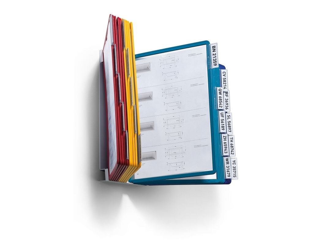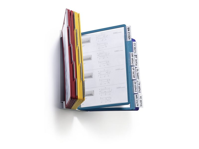 • Komplet registerlommesæt til væg • Vægbeslag med 20 SHERPA-registerlommer i A4-format, 5 stk. af hver af farverne rød, gul, grøn og mørkeblå • Registerlommer af polypropylen med farvede profilrammer og refelksionssvag folie, der er egnet til scannere • Inkl. faner med blanke indstik til markering af registerlommerne • Enkel montering på væg • Praktisk tapmekanisme, som sikrer nem udskiftning af tavlerne • 5 års garanti