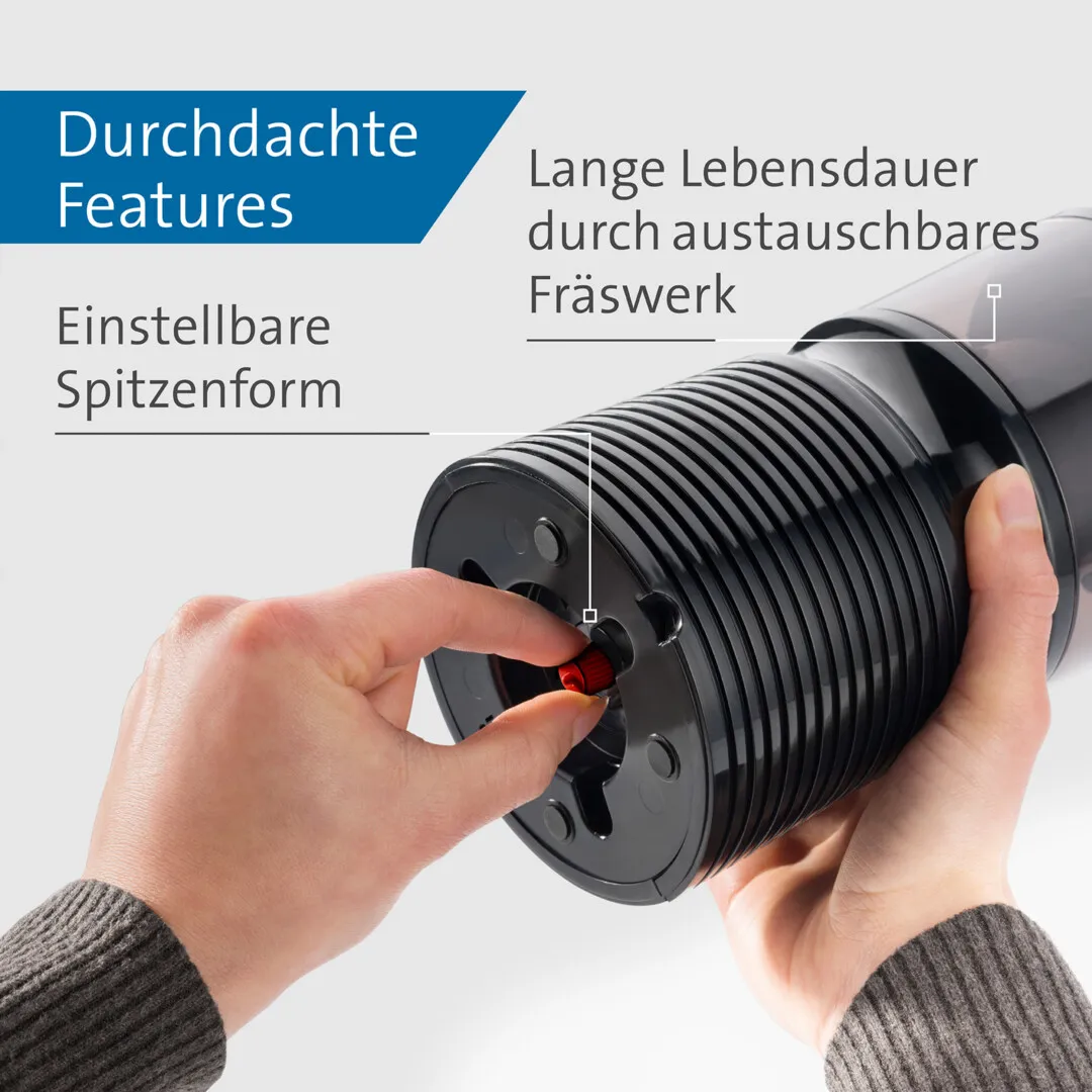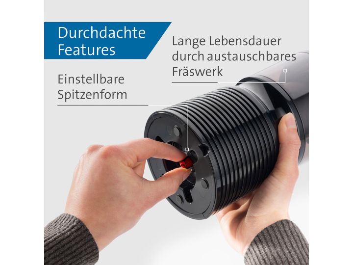 - Transparent, high-volume shavings compartment