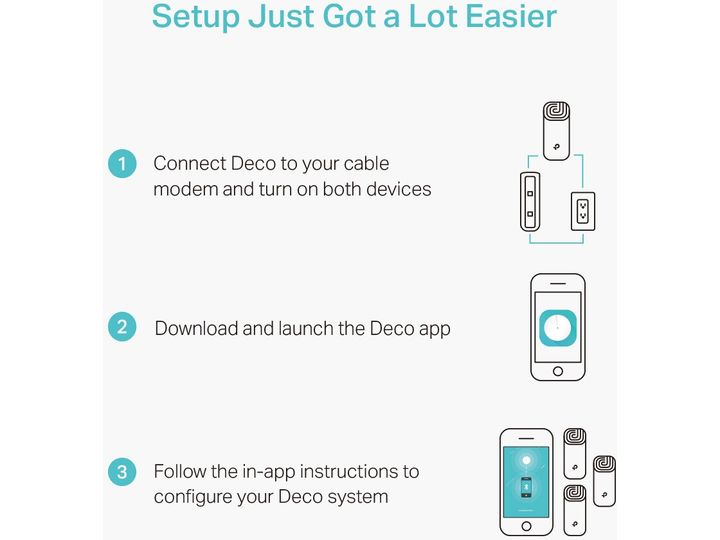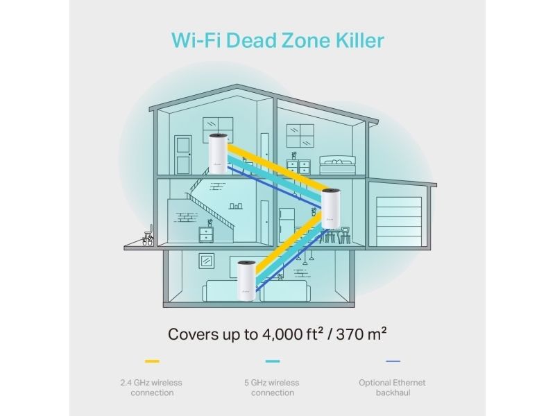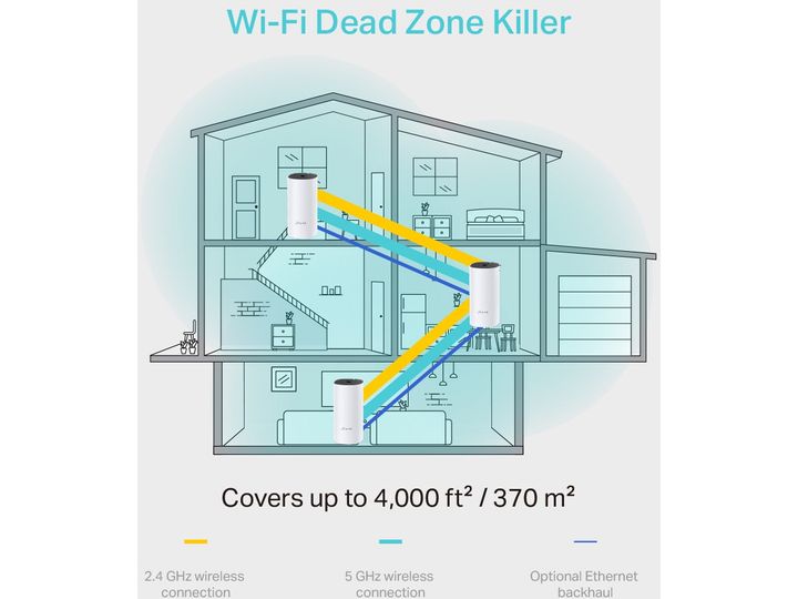 Deco uses a system of units to achieve seamless whole-home Wi-Fi coverage - eliminate weak signal areas once and for all! With advanced Deco Mesh Technology, units work together to form a unified network with a single network name. Devices automatically switch between Decos as you move through your home for the fastest possible speeds.