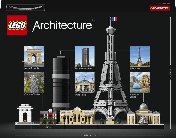 Gjenskap ikoniske landemerker i Paris med denne fantastiske Paris skyline-modellen. 21044 LEGO® Architecture Paris inkluderer Triumfbuen, Champs-Elysées, skyskraperen Tour Montparnasse, museums- og utstillingsbygningen Grand Palais, Eiffeltårnet og kunstmuseet Louvre. Tre- og gressområder og en dekorativ Paris-navneplate er prikken over i-en. Dette settet er utviklet for å gi en avslappende og tilfredsstillende byggeopplevelse til alle som er interessert i arkitektur, reising, historie og design. En «magnifique» modell som gjør seg like godt hjemme som på jobben. Alle skyline-byggesettene er skalert slik at strukturenes komparative størrelse blir riktig. Strukturene er også gjengitt i autentiske farger.