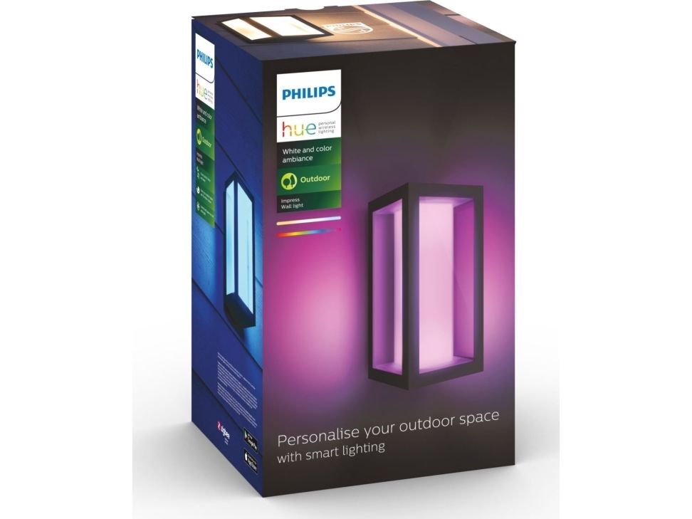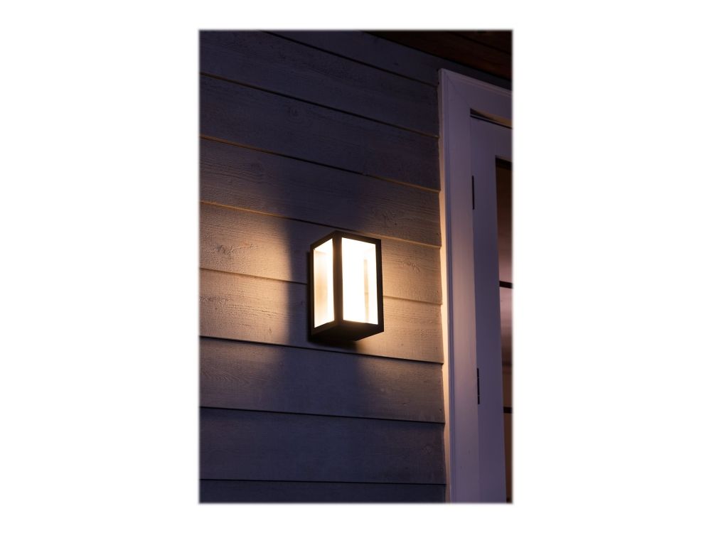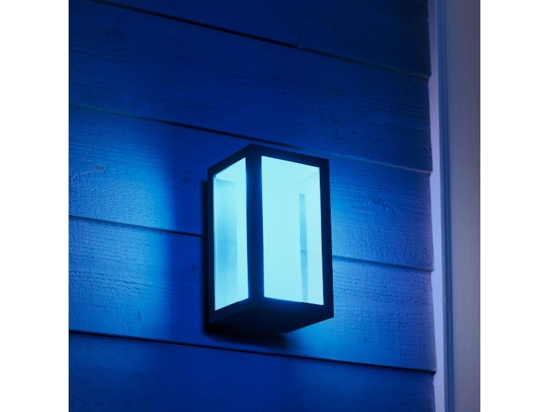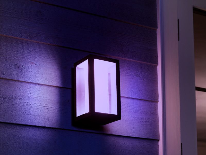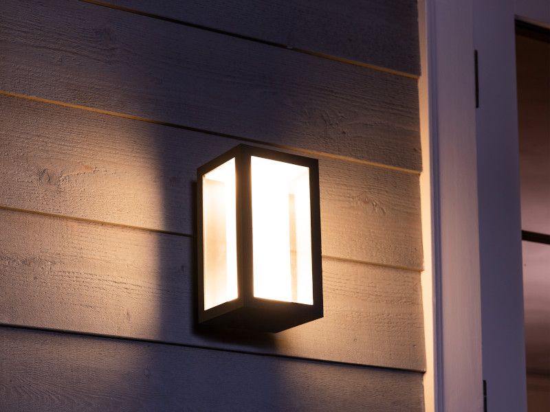 Nå kan du også bruke Hue utendørs. Econic-vegglampen kan kobles til din eksisterende Hue-bro for å dra nytte av alle funksjonene, f.eks. fjernstyring og planlegging, og for å skape den stemningen du ønsker.