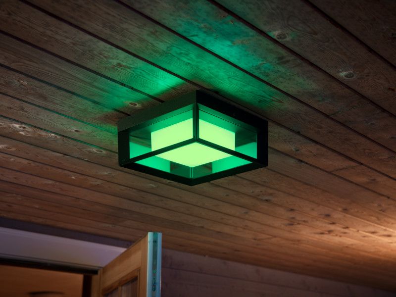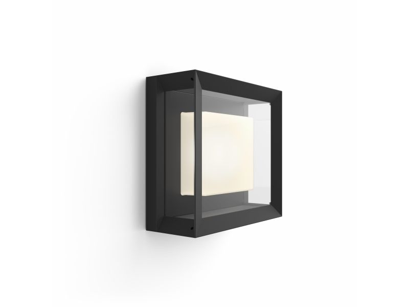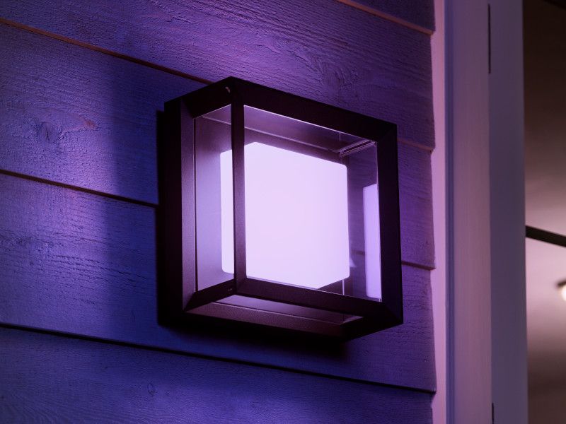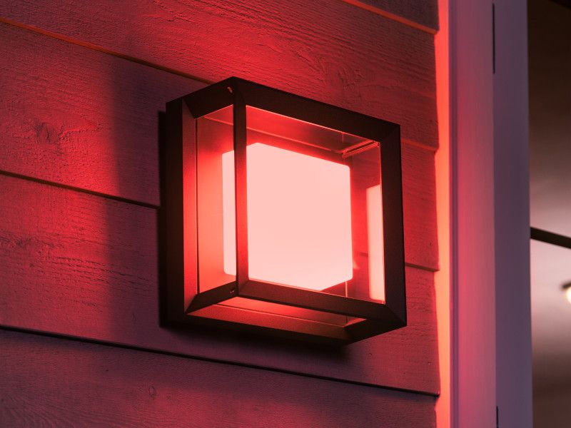Utvid Hue til utendørs. Impress-vegglampen kan kobles til din eksisterende Hue-bro for å få glede av alle funksjonene, som fjernstyring og planlegging, men den er også ypperlig til å skape atmosfære.