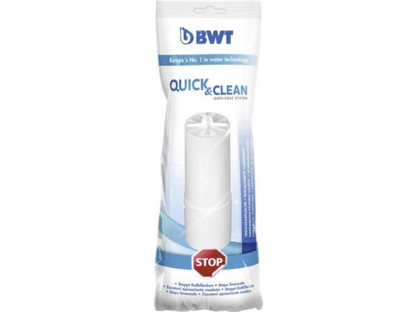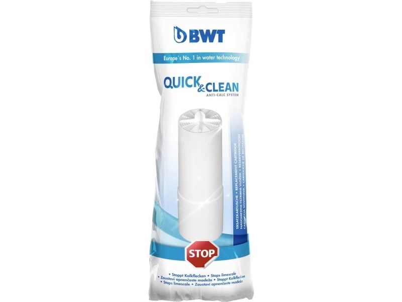 Udskiftningsfilter til BWT Quick & CleanDette kalkfilter skyller badeområdet ren for kalk- og sæberester ved ét tryk på en knap - helt uden brug af rengøringsmidler. Hele badeområdet skylles med kalkfrit vand og besværlig rengøring pga. kalk er dermed fortid. Sådan udskifter du kalkfilter i BWT Quick & CleanSkru bunden af filterhusetFjern den gamle kalkfilter og indsæt det nye filterSkru bunden fast på filterhuset igen, og BWT Quick & Clean er igen klar til brug Hvor tit du skal skifte kalkfiltret afhænger af, hvor meget kalk du har i vandet. Med den medfølgende teststrip kan du kan måle, hvor ofte kalkfilteret skal udskiftes. Udskiftningsintervallet ligger som tommelfingerregel mellem 30 til 90 dage