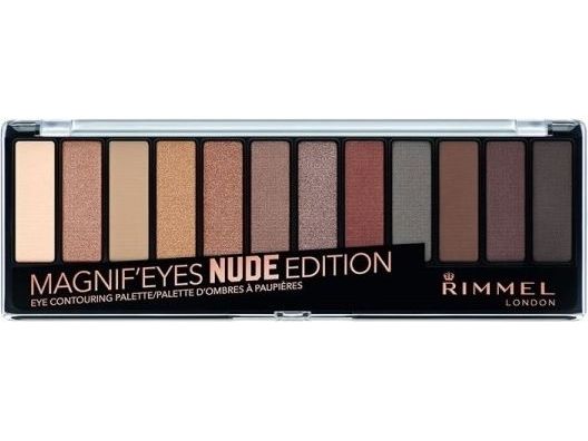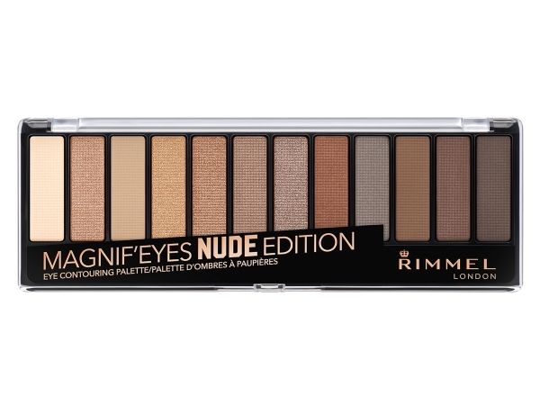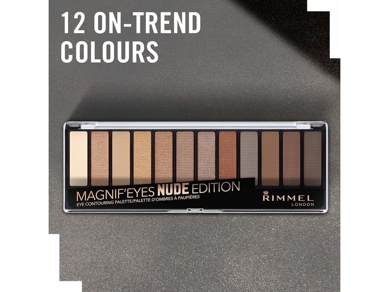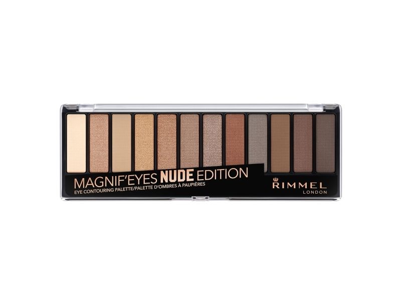 Rimmel Magnif'Eyes Shadow Palette, Glatt, Hudfarget, Nude Edition, 12 farger, Matt, Glitter, Robust