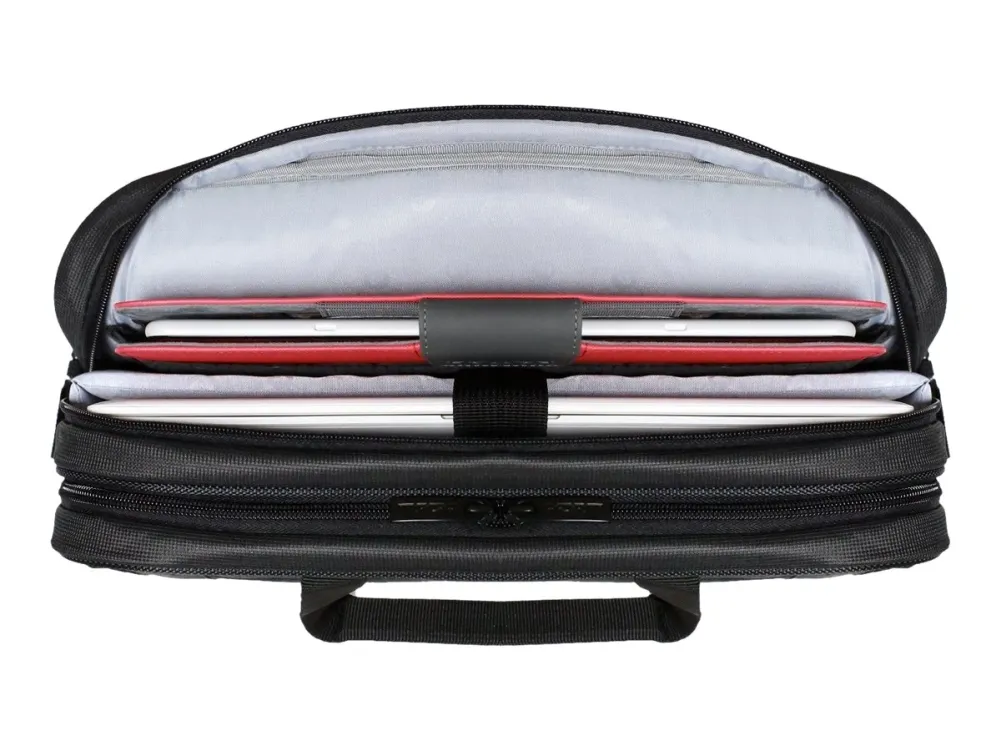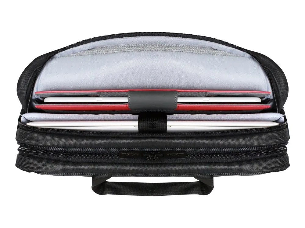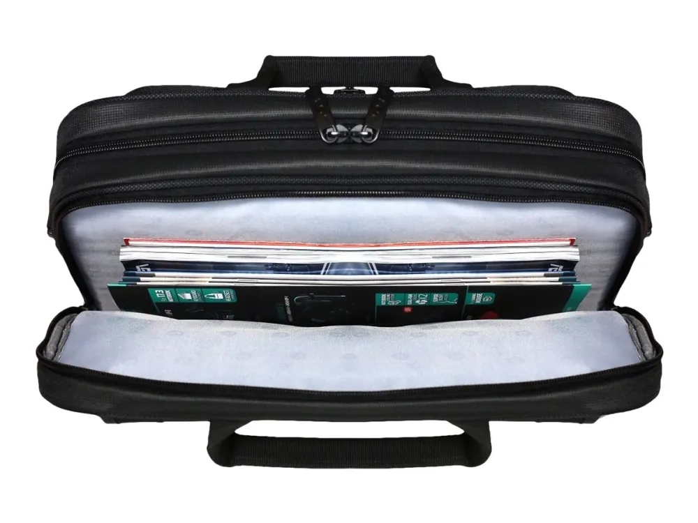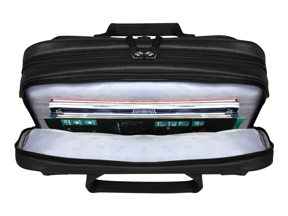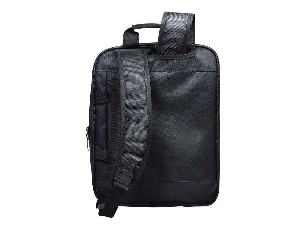It has a compatible padded notebook compartment from 13 '' to 14 '', but also a compartment for A4 document and a dedicated pocket for your tablet up to 10 ". It also includes a large pocket with an organizer for your accessories, battery external and passport.