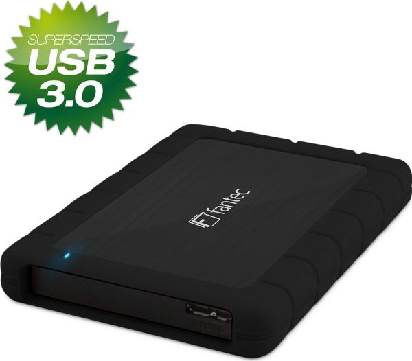 The FANTEC AluPro U3 is a compact hard drive case suitable for the installation of a 6.35 cm (2.5") SATA hard drive or SSD. Due to the quick and easy installation with Plug an Play the hard drive is ready to use within seconds. No additional power supply is necessary, it is supplied via the USB 3.0 interface. The aluminum case and the elastic silicone cover ensure ideal protection for your information even for mobile use.
