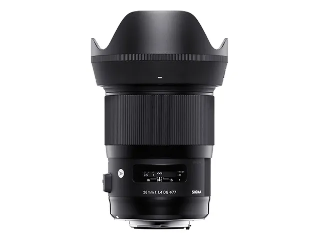 The classical angle of view with the latest lens design\n28mm angle of view used to be a representative wide-angle in the era of film cameras, and attracts many fans even today. To accommodate the request from many photographers who expressed the strong interest in using the familiar 28mm with Art line quality, SIGMA produces the SIGMA 28mm F1.4 DG HSM | Art, based on the know-how gained through development of the Art F1.4 prime lens lineup released so far. This newest traditional wide-angle lens, advantaged by the latest design and materials, as well as the processing technologies, is now available from SIGMA’s Art line.\n\nBest-in-class performance\nThis lens incorporates two FLD (“F” Low Dispersion) glass elements and three SLD (Special Low Dispersion) glass elements. In addition, it effectively arranges three aspherical lenses, including a large-diameter aspherical lens to provide thorough correction of magnification chromatic aberration —encountered particularly in wide-angle lenses. This offers high resolution over the entire sensor, while sagittal coma flare is thoroughly corrected and distortion is also minimized to the fullest. Excellent performance is delivered in street photography, as well as shooting landscapes and night skies.\n\nDesigned to meet all shooting conditions\nThe water- and oil-repellent coating on the front lens element, together with the dust- and splash-proof structure, ensures excellent performance even in the most challenging shooting conditions. The high-speed AF, thanks to the HSM (Hyper Sonic Motor) with an updated algorithm, captures instantaneous photography movement.\n\nwater- and oil-repellent coating\nForefront and rear lenses incorporate a water and oil-repellent coating that allows water to be wiped away easily and prevents oil and fat from sticking to the surface, even in challenging shooting conditions. At the same time, the maintenance of the lens surface becomes easier.\n\ndust- and splash-proof structure\nThis lens features a highly effective dust- and splash-proof structure with special sealing at the mount connection, manual focus ring, zoom ring, and cover connection, allowing photographers to work in all types of weather.\n\nHigh-speed AF\nThe high-speed AF, thanks to the HSM (Hyper Sonic Motor) with an updated algorithm, captures instantaneous photography movement.\n\nHood with lock\nFeatures a hood with lock to prevent dropping the hood.
