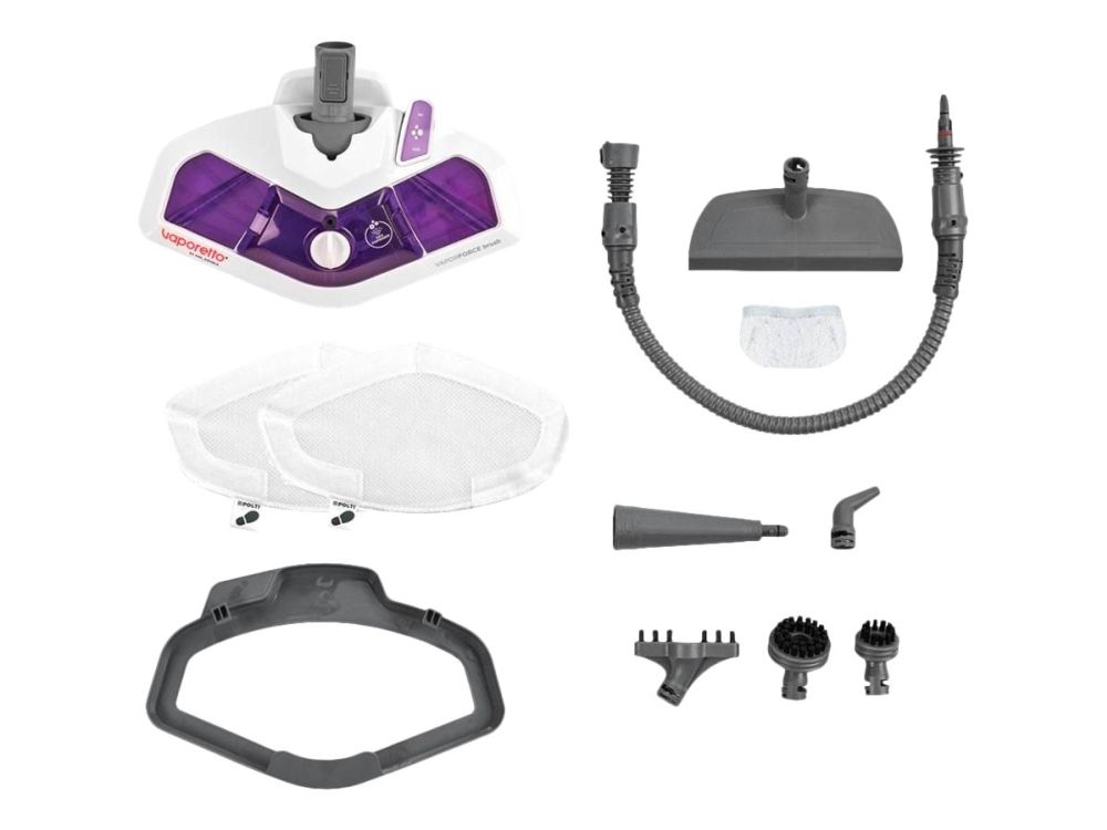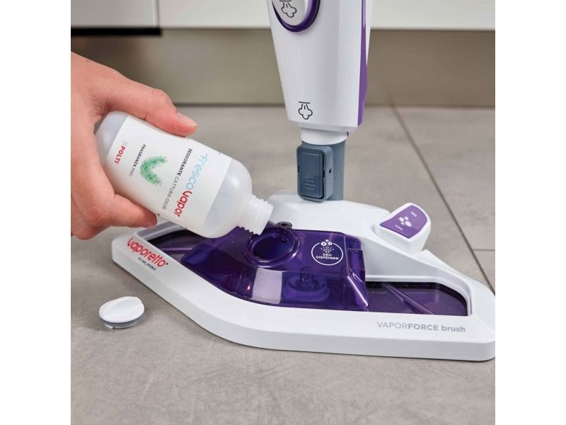 Vaporetto SV440 Double combines a dual function in a single appliance: steam mop and handheld cleaner to treat up to 15 different surfaces. Lightweight and handy, kills and removes 99.9% of germs and bacteria. As well as ensuring in-depth hygiene spreads a fresh fragrance throughout the home via the built-in dispenser for the exclusive Frescovapor deodorant.