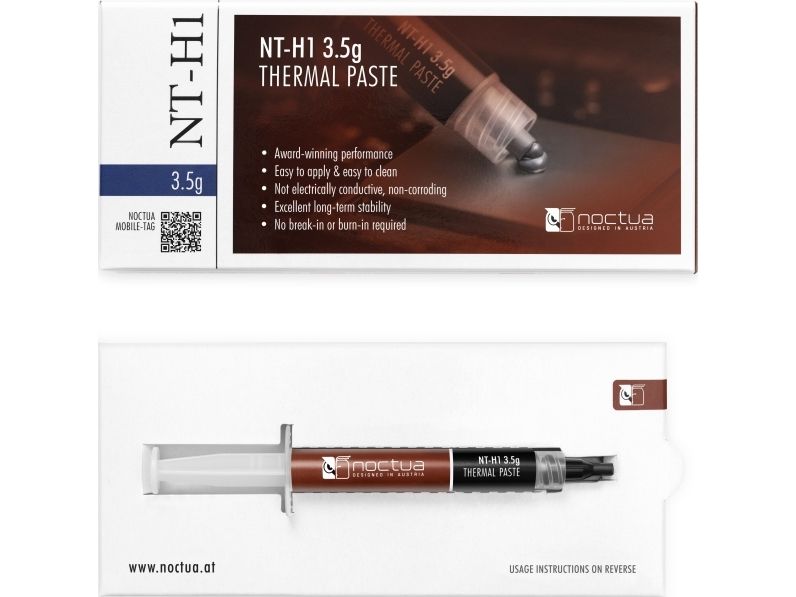 Noctua's NT-H1 is a pro-grade TIM solution for enthusiasts who demand both exceptional performance and maximum ease of use: A hybrid compound of different micro-particles allows for minimum thermal resistance, excellent ease of use and outstanding long-term stability.