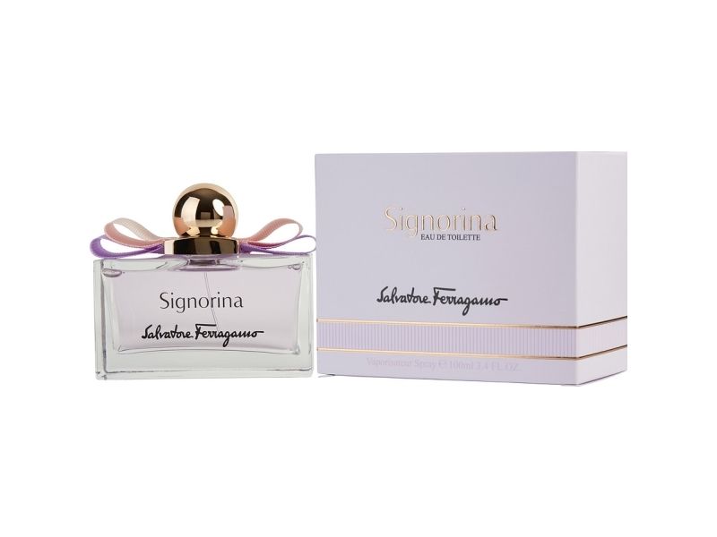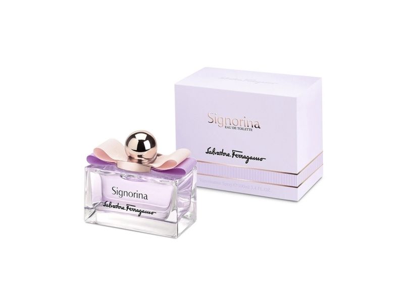 The joyful yet romantic lilac color reveals the iconic and chic shape of Signorina. The Vara bow shows a delicate combination of pink and lilac which infuses a sense of freshness.