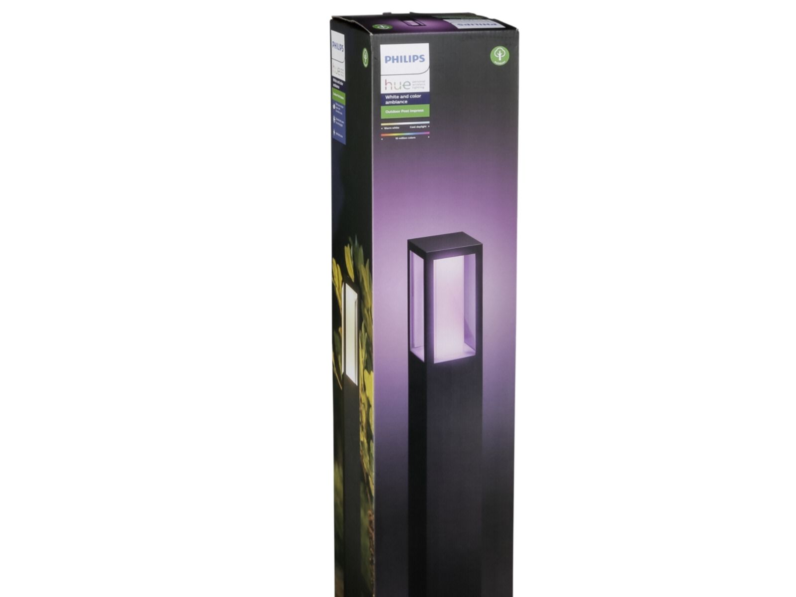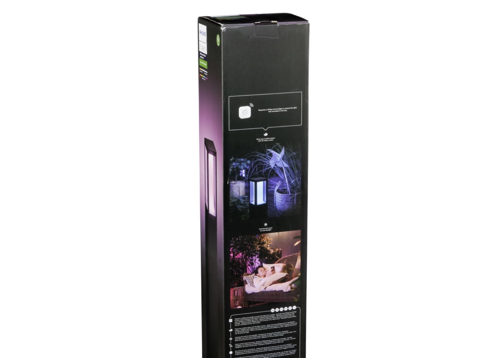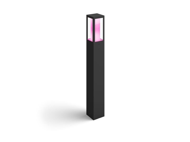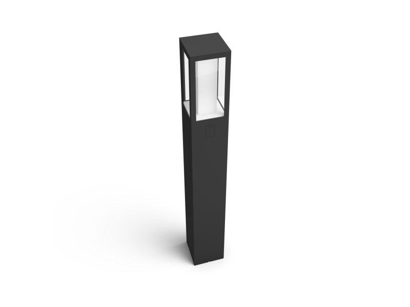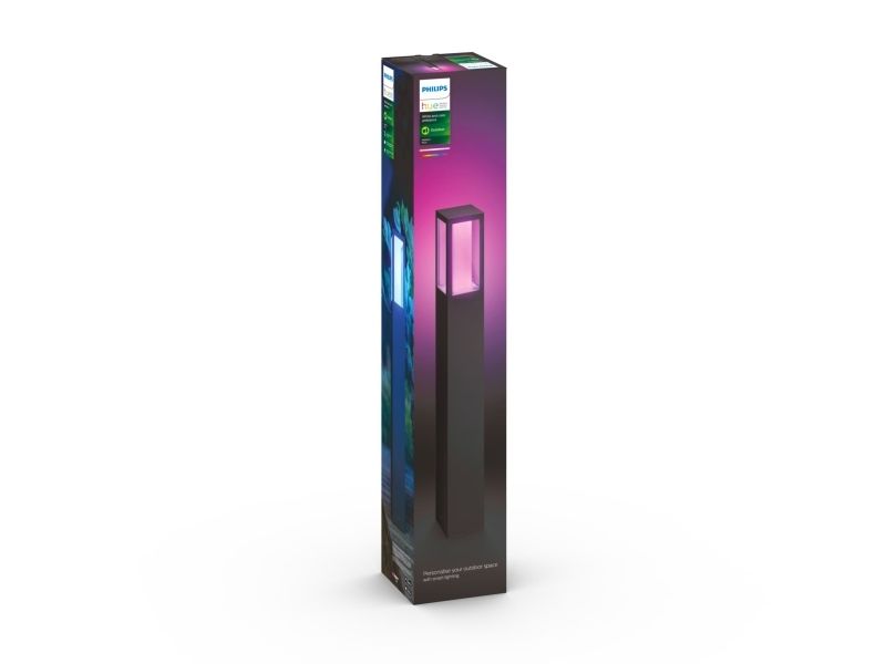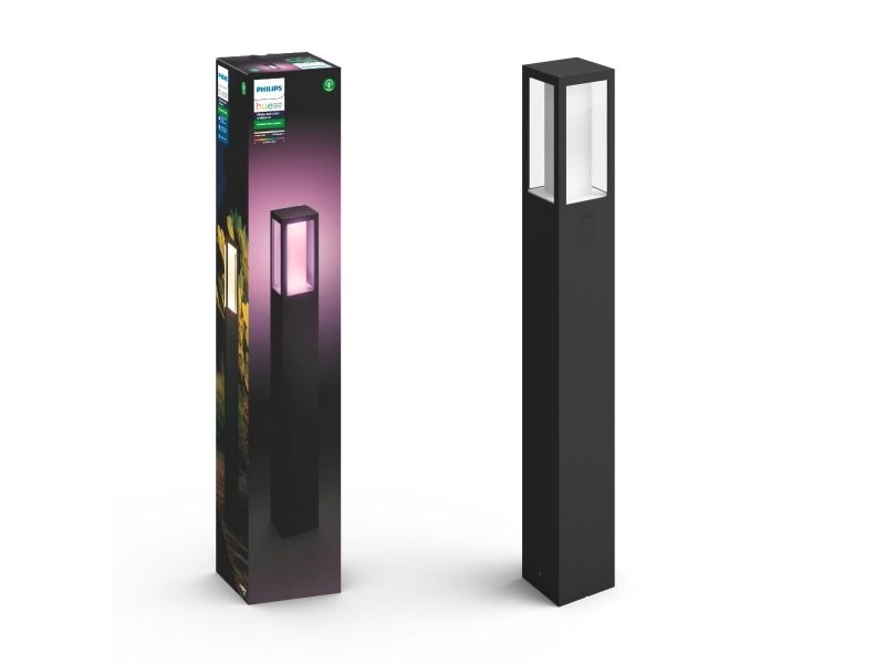 Nå kan du også bruke Hue utendørs. Impress Pedestal-lampen kan kobles til din eksisterende Hue-bro for å dra nytte av alle funksjonene, som fjernstyring og planlegging, men er også perfekt til å skape atmosfære.