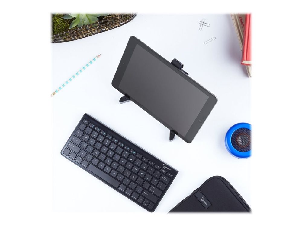 The Gembird TA-TS-01 is a versatile AV furniture stand designed for tablets. This desktop-mounted stand offers a stable platform for your device, making it suitable for both home and office use. The compact structure ensures it fits into any space, providing functionality and style.