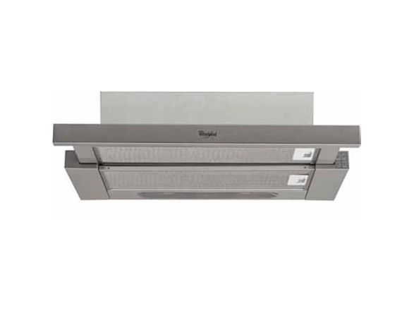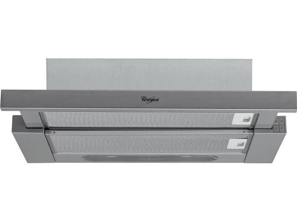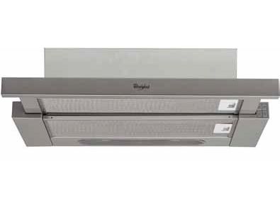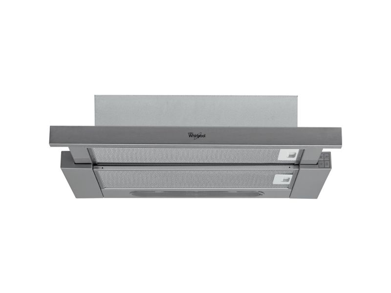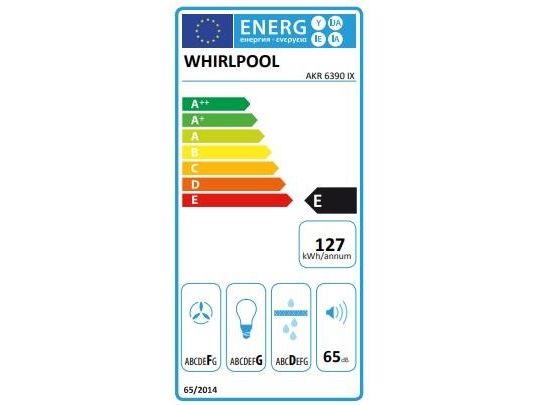 Whirlpool AKR 6390/1 IX. Maximum extraction power: 304 m³/h, Fluid dynamic efficiency class: E, Lighting efficiency class: D. Type: Semi built-in (pull out), Product colour: Silver, Control type: Buttons. Grease filter type: Aluminium, Number of filters: 2 pc(s). Bulb power: 10 W, Number of bulbs: 2 bulb(s), Bulb type: LED. Energy efficiency class: D, Annual energy consumption: 61.6 kWh, Connected load: 121 W