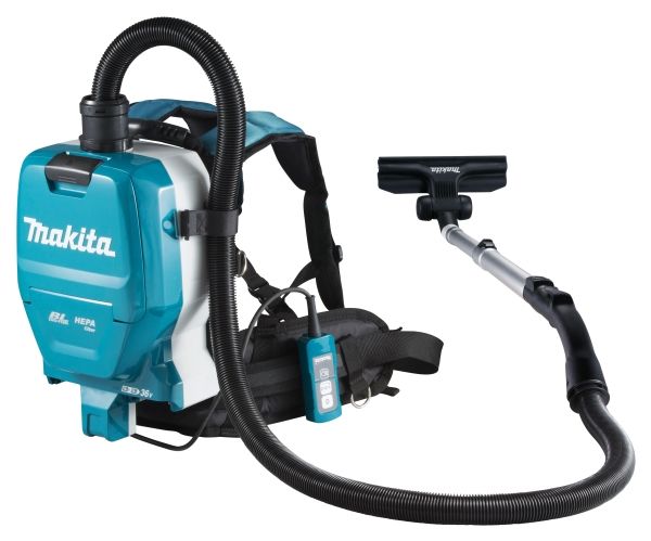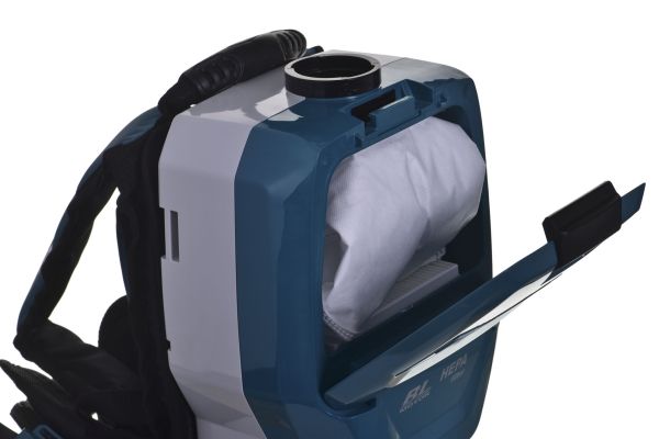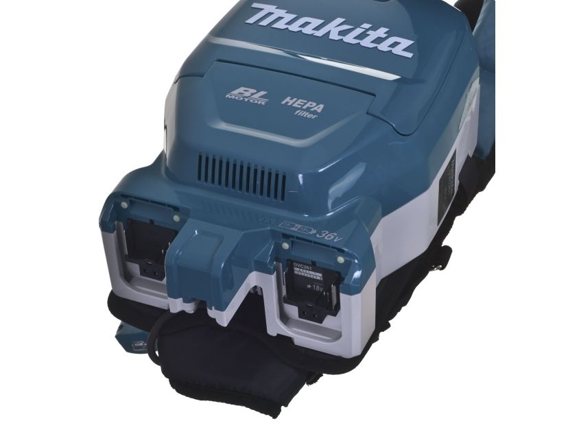 DVC261 is a cordless backpack vacuum cleaner powered by two 18V li-ion batteries in series.