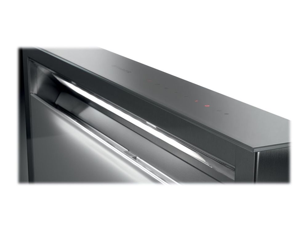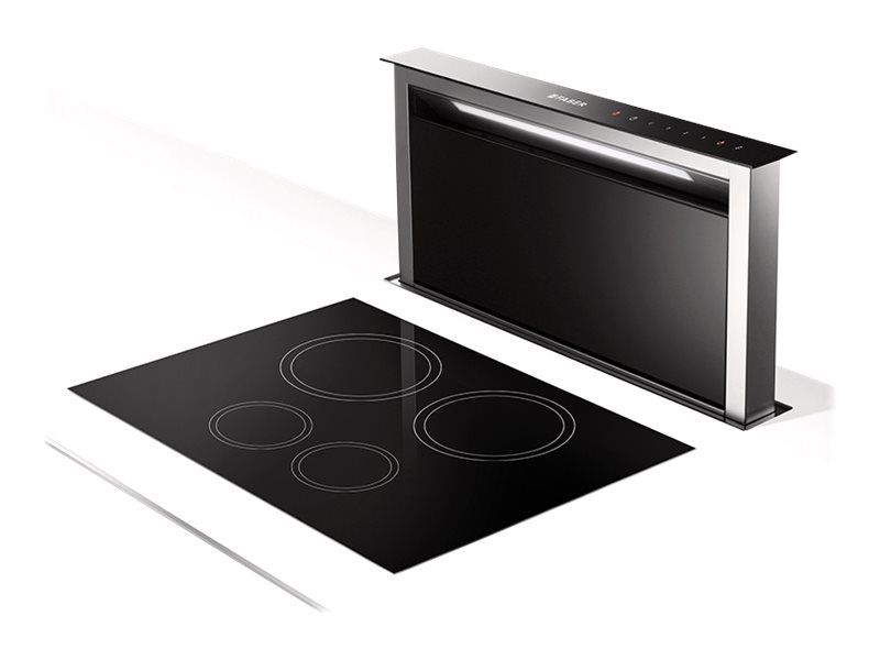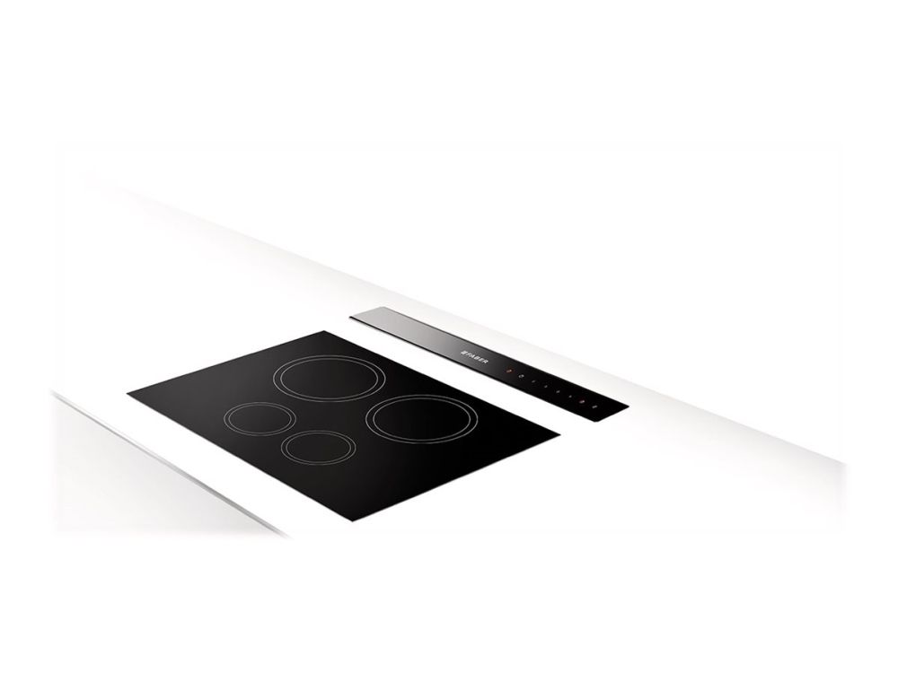 Consisting of an inner body integrated into the hob with a motor that controls the raising and lowering of the horizontal panel set up for extraction, Fabula only shows its most agile and lightweight part. When the hood is in the off position, the panel disappears, showing the Touch Control panel on the thin glass panel, which creates a homogeneous surface with the burners. An LED bar lights up the cooking surface, creating a cosy and extremely functional corner.