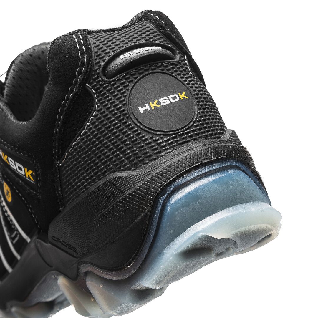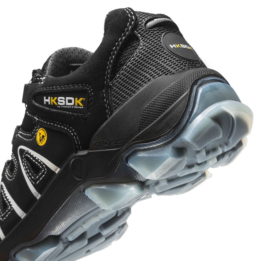 HKSDK Z5 Sikkerhedssko Hksdk model Z5 er nyeste medlem af flagship-serien Z. En sikkerhedssko, der har et innovativt design, samtidig med, at den er stærk og komfortabel at have på. For at sikre den bedste stødabsorbering på hårde underlag er skoen udstyret med 5. generation af Hksdk AIR-sålen; den blødeste og mest fleksible AIR-sål nogensinde. Komforten bliver optimeret af, at sikkerhedsskoen er beklædt med det ventilerende PowerBreeze®, som giver ekstremt god åndbarhed for dine fødder. Derudover sikrer aluminiumståkappen og Tech-Fiber-sømværn at Z5 er 100% sikker og en af de letteste sikkerhedssko på markedet. Hksdk har mange forskellige modeller, hvor nogle modeller passer bedre end andre til bestemte former for arbejde. Herunder kan du se om Hksdk Z5 passer til de forhold, som du arbejder under. Godkendelse: EN ISO 20345 S3 SRC ESD