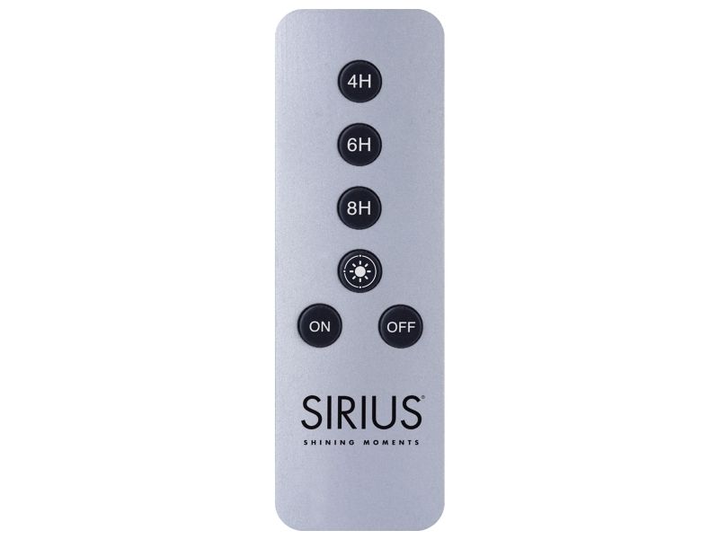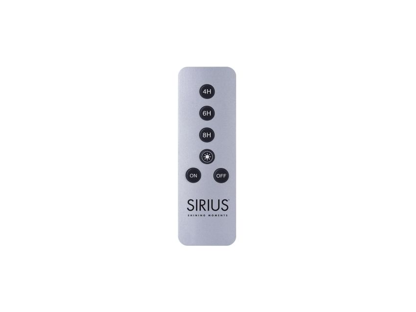 Brug den indbyggede timer (4/6/8 timer), lysdæmper eller ON/OFF-funktioner til at styre dine Sirius-lys samtidigt. Sætter du fjernbetjeningen på f.eks. 4 timer, vil alle lysene slukkes automatisk efter 4 timer. Efter 20 timer tænder lysene igen, og sådan vil det fortsætte, hvis du ikke bruger sluk knappen.