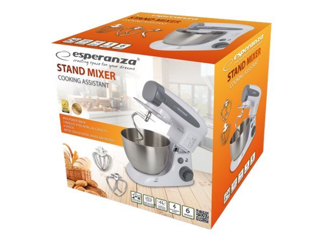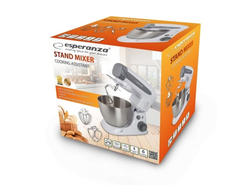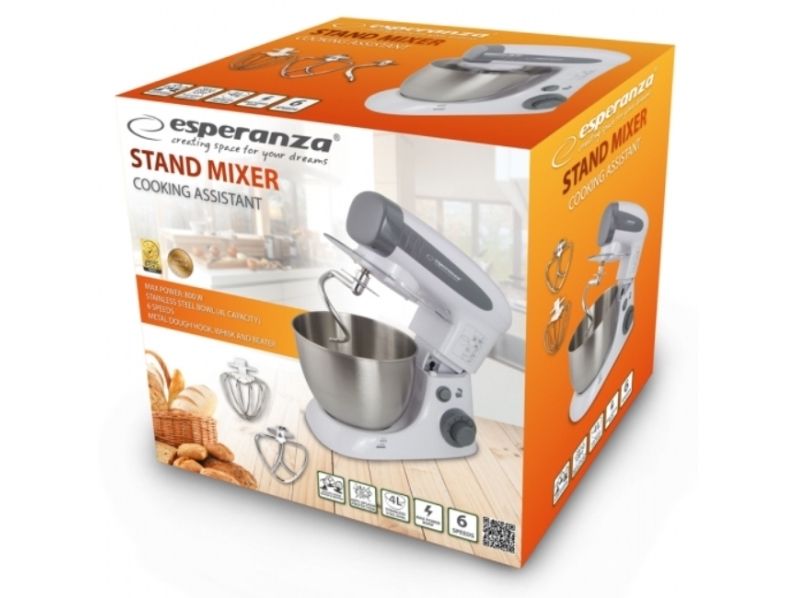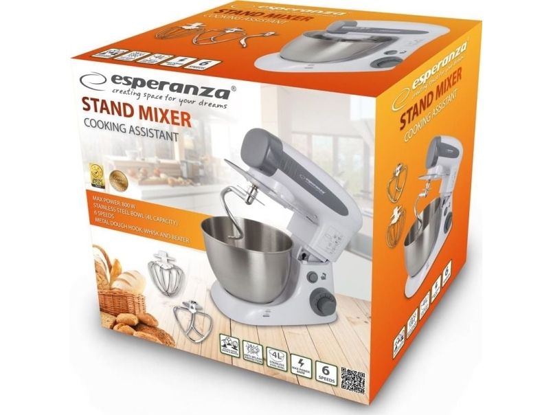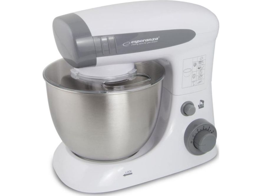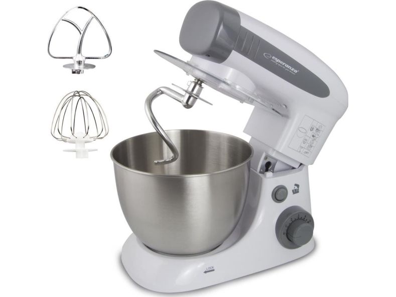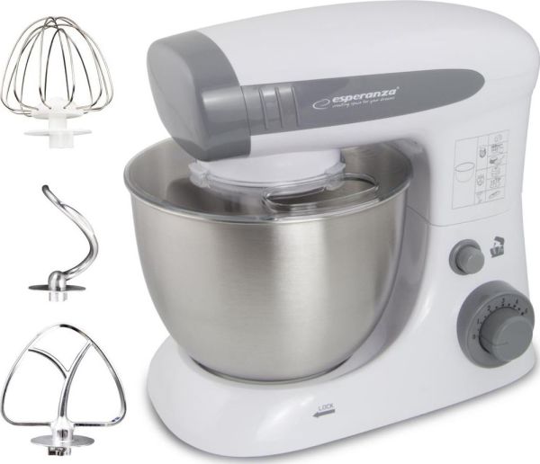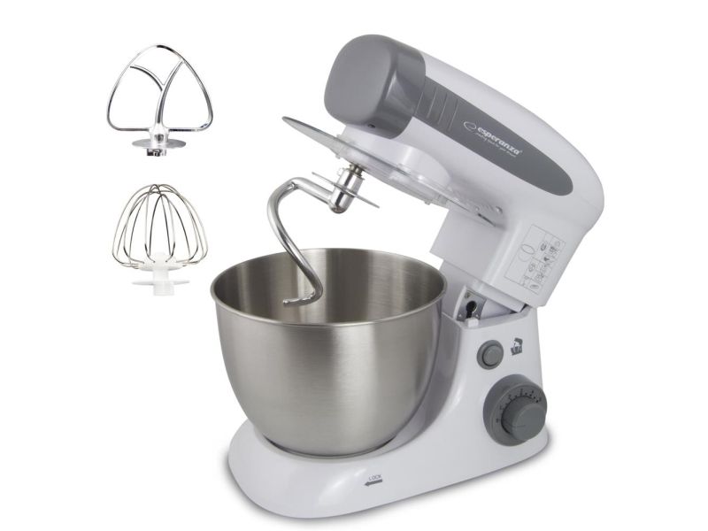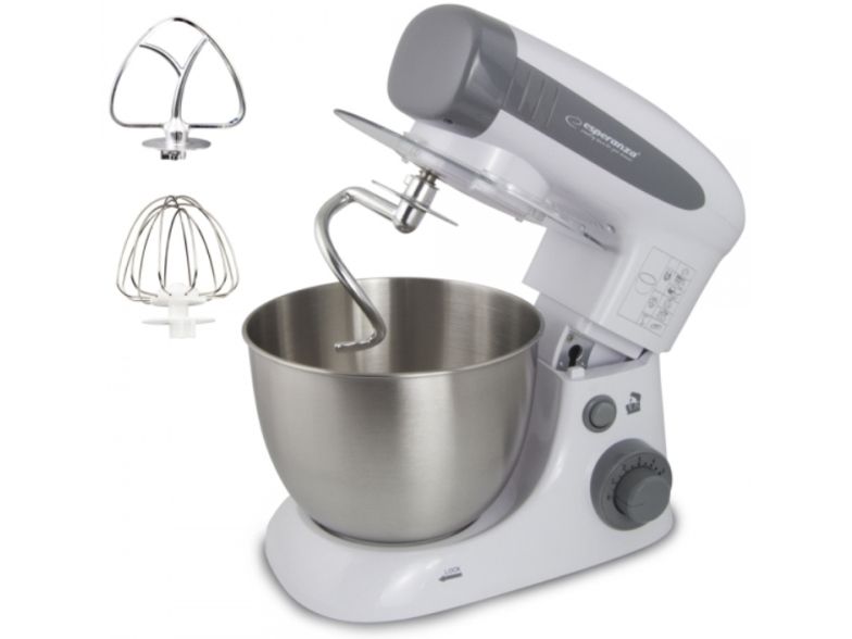 The Esperanza universal food processor is equipped with a powerful and durable engine, so that you can handle even the most difficult kitchen challenges. The professional beater can allow you whip up fluffy cream for desserts and egg white foam for biscuits, meringue cakes, waffles and other kind of cakes. If you want to surprise your guests with home-made pasta, pizza or bread straight from the oven, the special hook and whisk will help you to prepare in few moments. The taste of a home-made cake, baked by grandma or mother, remains in the memories of each of us for a long time. To let your loved ones enjoy it, this professional stand mixer can serve the entire range of homemade baked food.