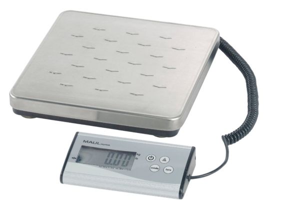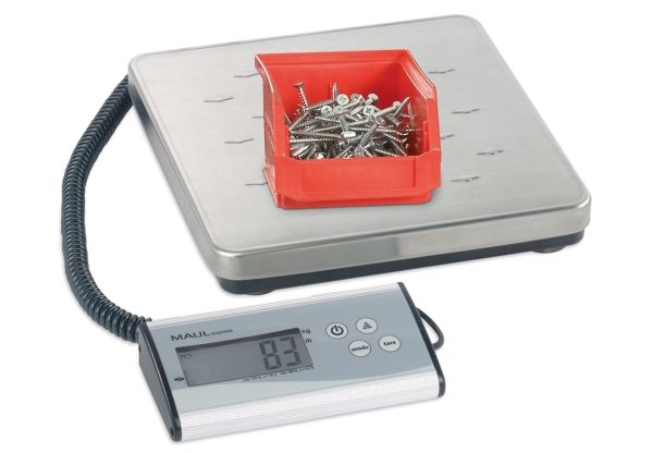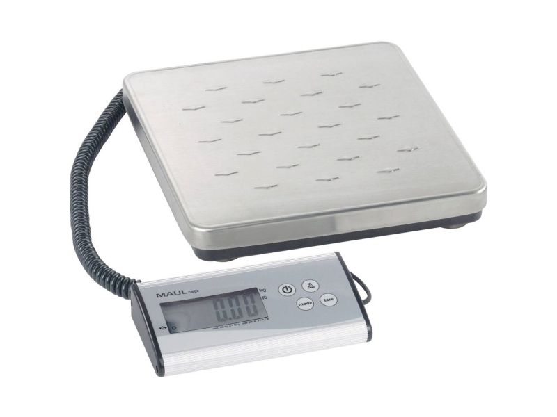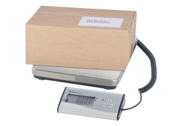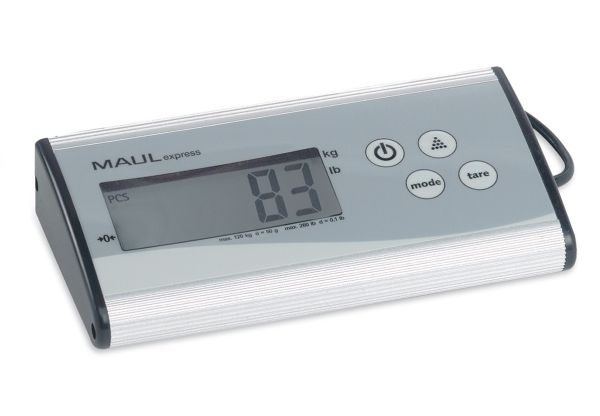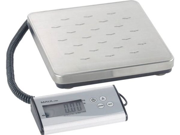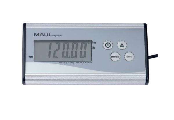 MAULcargo Pakkevægt 120 kg MAULcargo er en kraftfuld og alsidig digital pakkevægt, skabt til kontorer, pakkerum og lagerområder med behov for nøjagtig vejning af større forsendelser. Den har en maksimal kapacitet på hele 120 kg og en præcision på 50 g, hvilket gør den velegnet til både lette og tunge pakker. Vægten består af en stabil, flad platform i rustfrit stål med skridsikre nopper og et separat kontrolpanel i aluminium, som kan placeres frit på bord eller væg via det medfølgende 1,5 m kabel. Dette gør aflæsning nemt – selv ved store kasser, der dækker vejepladen. MAULcargo understøtter både vejning og optælling af identiske enheder. Den indbyggede tællefunktion aktiveres via kontrolpanelet og tillader præcis visning af antal emner ved hjælp af et defineret referenceantal (25, 50, 75 eller 100 stk). Enheden kan skifte mellem kg og lb og nulstilles automatisk, hver gang den tændes. Vægten betjenes med én enkelt knap til TÆND/SLUK og slukker automatisk efter 2 minutters inaktivitet. Vægten leveres med et 9V-batteri. Med over 80 års ekspertise bag sig er MAULcargo et solidt valg til professionelle miljøer. Leveres med 2 års garanti. Produktmål: Vejeplatform: 27 x 27 cm Kontrolpanel: 18 x 9 x 3,8 cm Samlet højde: 4,5 cm Samlet vægt (inkl. emballage): 3,075 kg Kapacitet: 120 kg Præcision: 50 g Minimumsvægt: 150 g