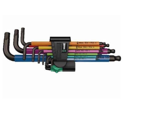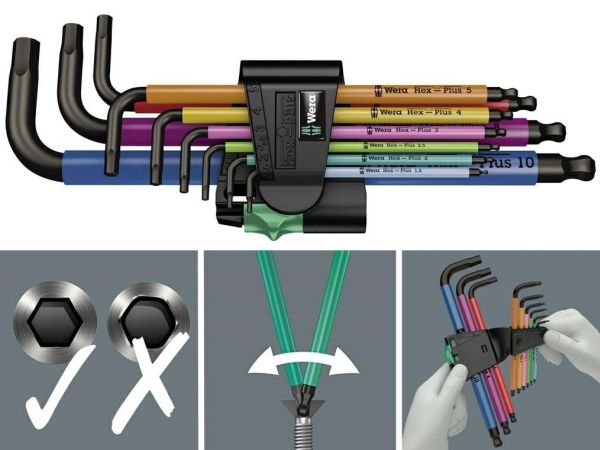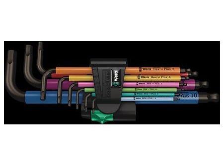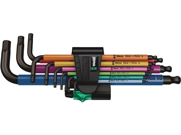 Wera 950/9, L-formet hexnøkkel, Metrisk, 9 stykker, Plast, Rustfritt stål, Svart oksiderende