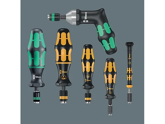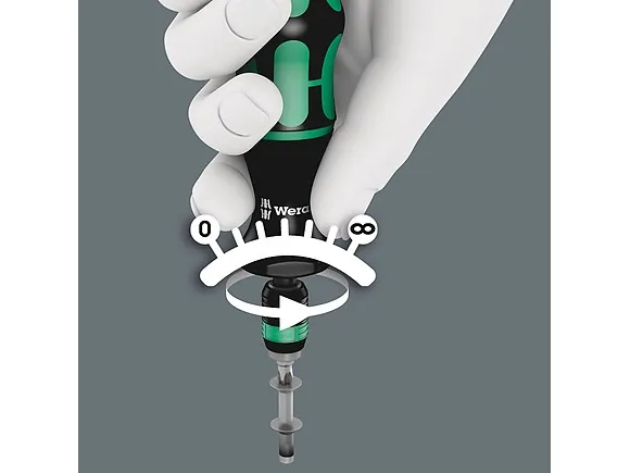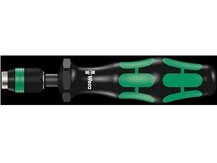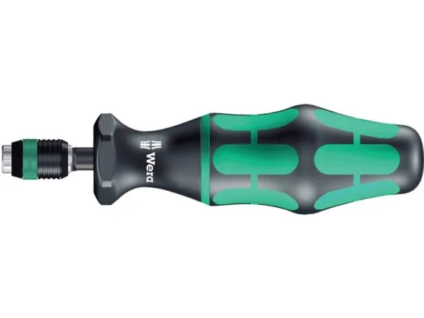 Wera torque screwdriver. With a factory pre-set torque value set to the smallest scale value. For all applications, where the same constant torque and repeat accuracy are required. The torque can be changed with an extra tool within the measuring range (re-calibration kit can be ordered with the code number 05137003001). Afterwards you can check the set value using an off-the-shelf torque tester. Unlimited loosening torque for slackening stuck screws. Rapidaptor quick-release technology for rapid bit changes. Suitable for bits with a 1/4" external hexagon drive as per DIN ISO 1173-C 6.3 and E 6.3 (ISO 1173). Multi-component Kraftform handle with hard and soft zones for high working speeds, whilst being easy on the hand.