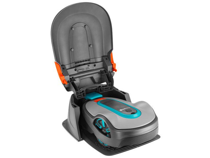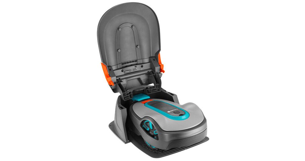 Denne robuste plastgarasjen beskytter robotgressklipperen og ladestasjonen mot både sol og regn. Det sammenleggbare taket gir enkel tilgang til robotgressklipperens kontrollpanel, slik at innstillingene enkelt kan justeres. Beskyttelse mot sol og regn, Gardenas robotgressklippere er ekstremt robuste og designet for utendørs arbeid. Denne garasjen gir ekstra beskyttelse mot direkte sollys og regn. Denne garasjen gir deg enkel tilgang til kablene, og du kan når som helst få tilgang til kablene fra baksiden av ladestasjonen. Sammenleggbart garasjedeksel for enkel tilgang til robotgressklipperens kontrollpanel.