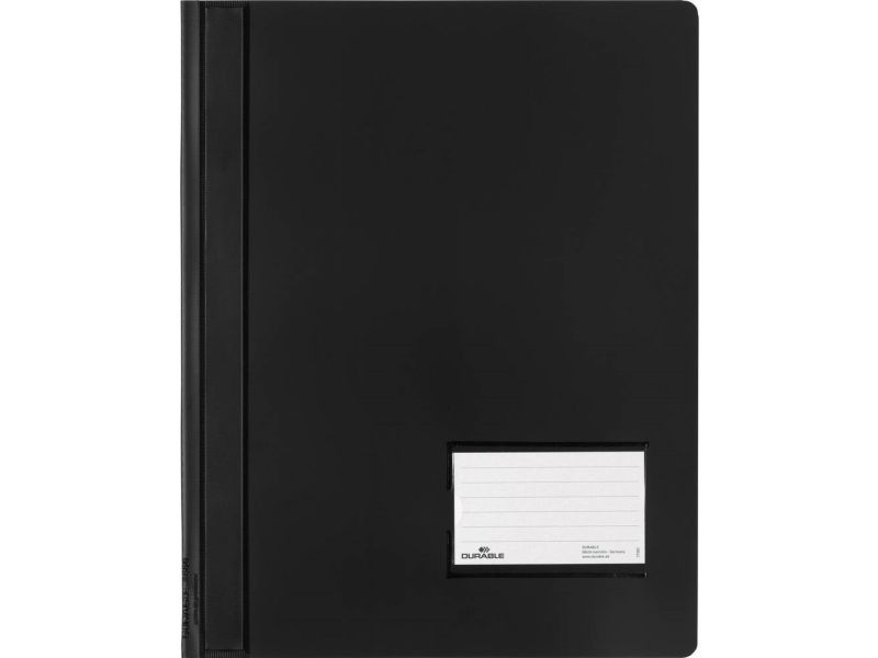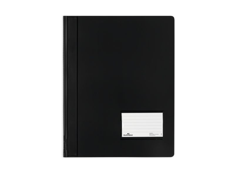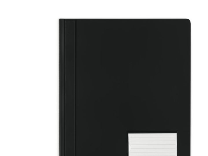 Elegant translucent PVC folder with plastic-coated filing bar and clear inside pocket. With label holder in business-card format (57 x 90 mm) on the front cover. Extra wide, also suitable for plastic pockets. With channel for suspension rail 1531.