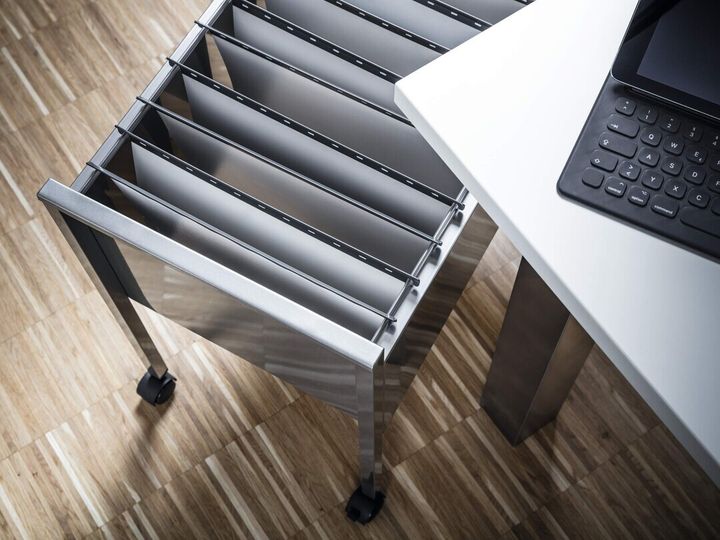 | • Hængemappevogn i ridsefast stål • Leveres uden hængemapper • Til ca. 80 hængemapper i A4-format • 4 hjul, 2 af dem med bremse • Leveres adskilt med monteringsvejledning |