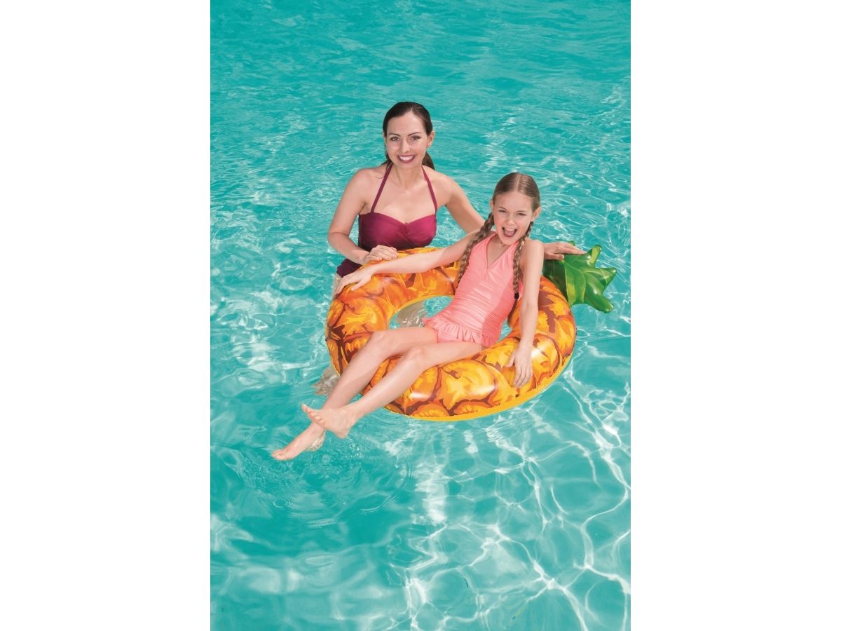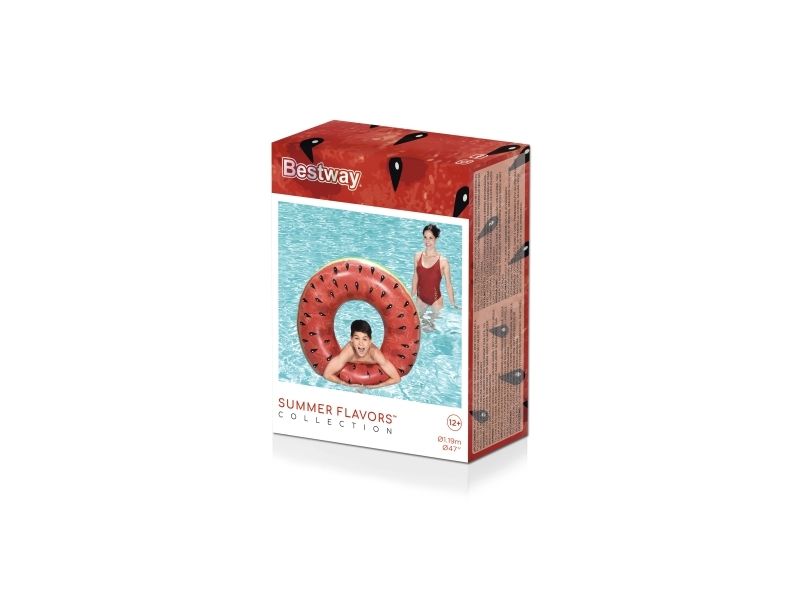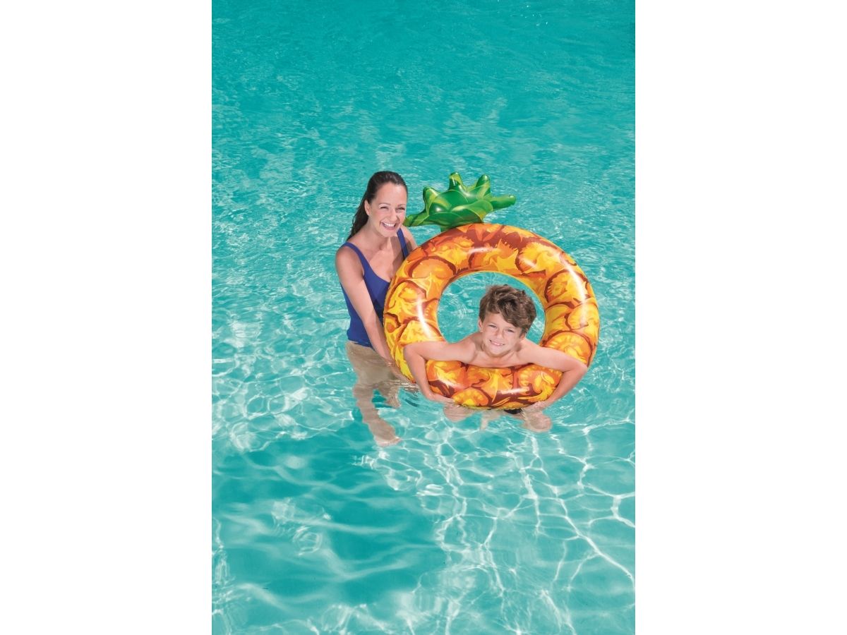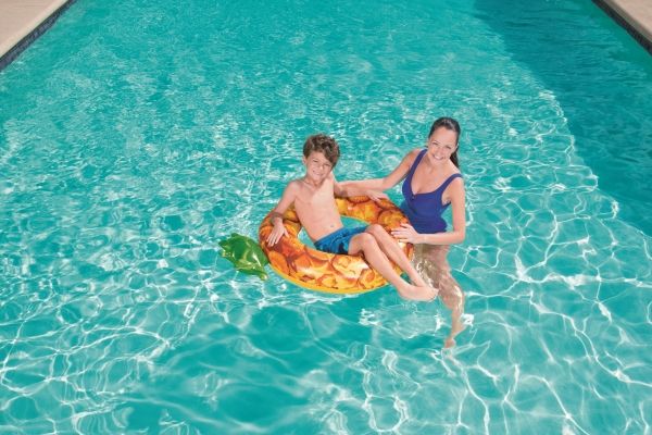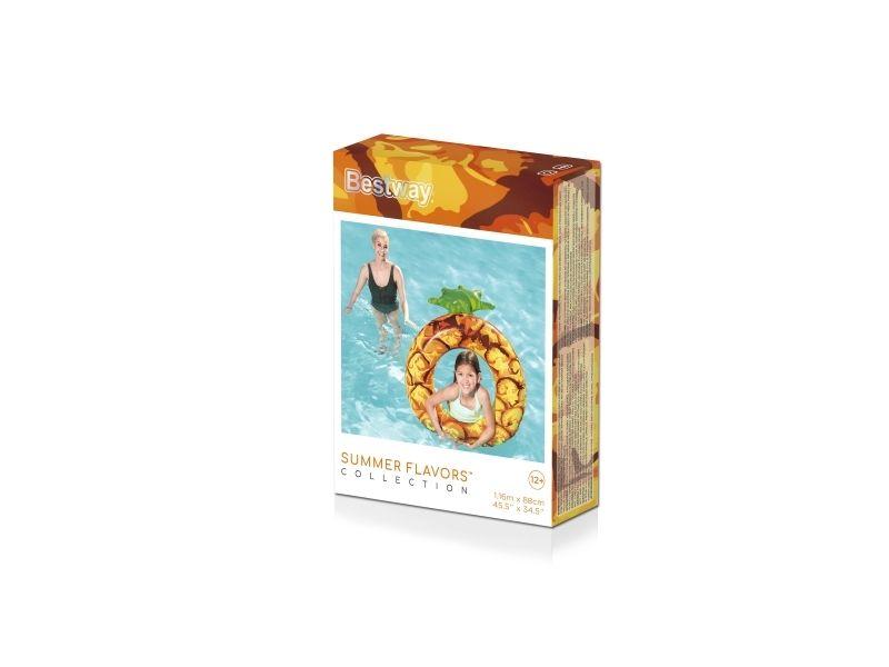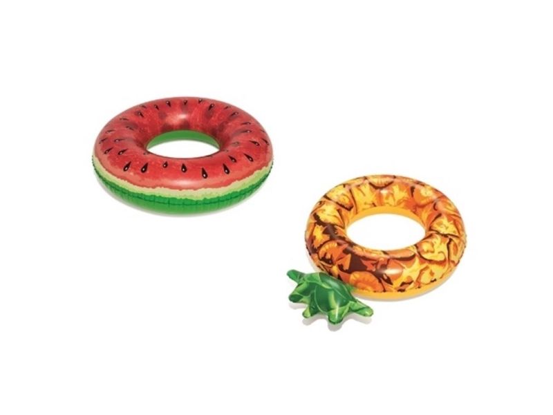 Bestway® Tropical Badering er den perfekte, saftige tilføjelse til dit poolparty eller sommerarrangement. Den fotorealistiske badering har et tropisk frugtprint, der giver dig en forfriskende, plaskende start på din sommer. Med de klare farver og det festlige design vil du og dine børn elske hvert sekund, I tilbringer i vandet. Flyd med stil og nyd den lounge-værdige oppustelige frugtring, der er lavet af et holdbart materiale og sikkerhedsventiler til nem oppustning og tømning. Uanset om du tager røret med til stranden, søen, floden eller poolen, kan det nemt gemmes i svømmetasken. Gør dig klar til mange solrige dage, uanset hvor dine sommereventyr fører dig hen, med Bestway Tropical Fruit Swim Tube!