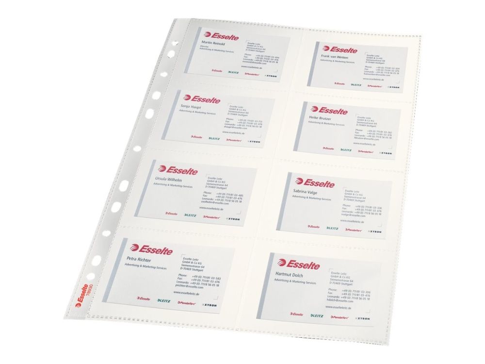Plastlommer A4 Esselte 78930 t/visitkort klar t/16 kort (10 pakker á 10 stk.)