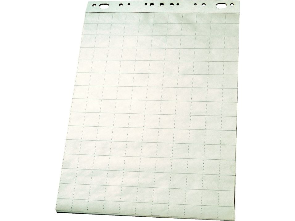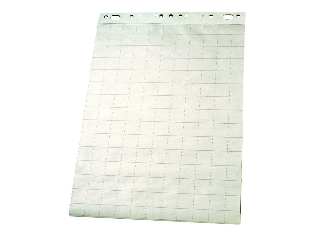 Flipoverblok fuld størrelse 65x95 cm, kvadreret på en side og blank på den anden, 50 ark 60 g TMP papir. Perforeret papir og universal ophængningssystem.