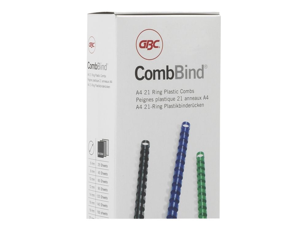 Innbinding blir ikke enklere! GBC CombBind er et bestselgende innbindingssystem. Enten du vil produsere manualer eller interne rapporter, kan CombBind plastspiraler lage stilig bundet, redigerbart dokument. Med en CombBind spiral ligger sidene flatt for praktisk notering og kopiering. Det er enkelt å legge til eller fjerne sider.